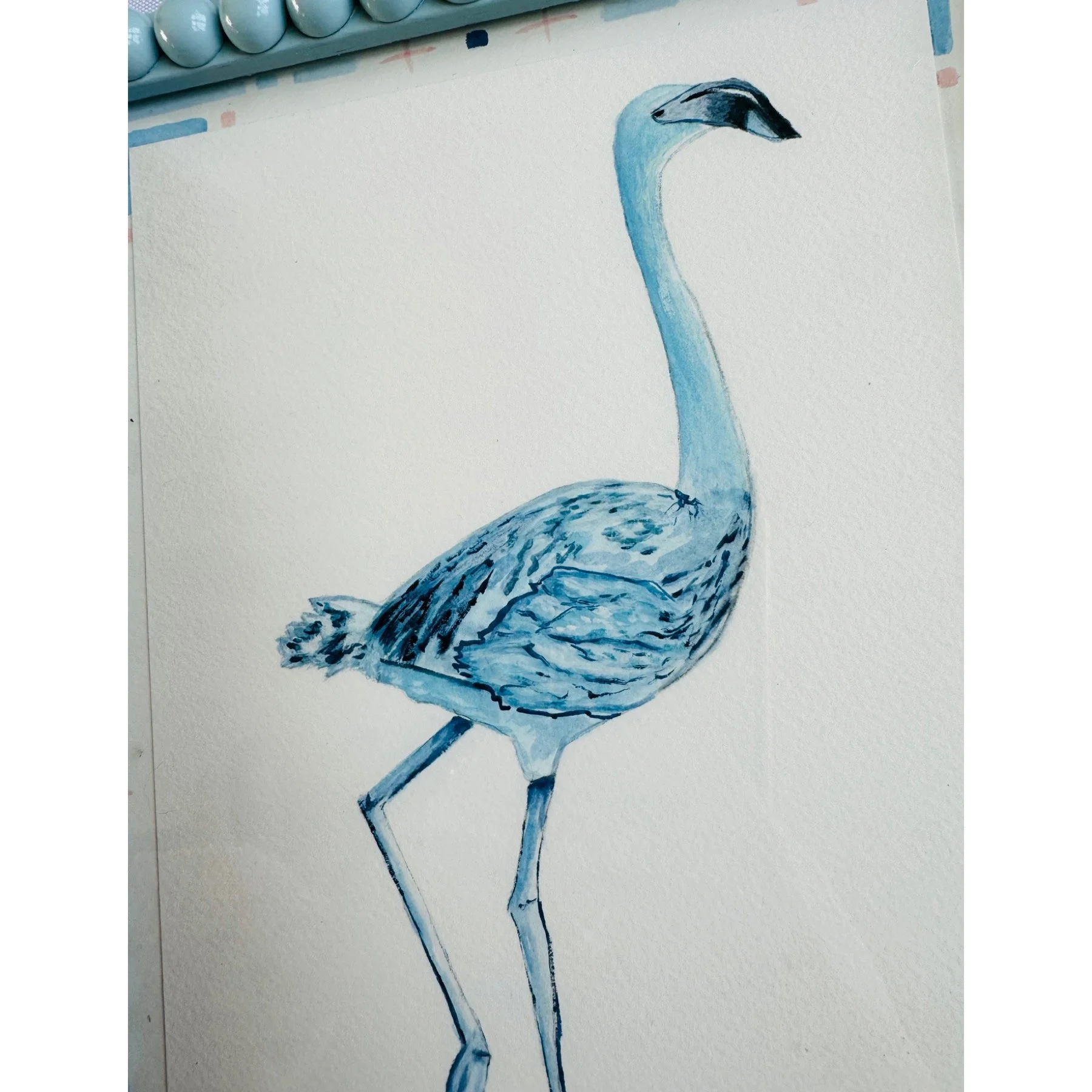 Watercolor on cold-pressed watercolor paper, framed in a glossy, blue bobbin frame.