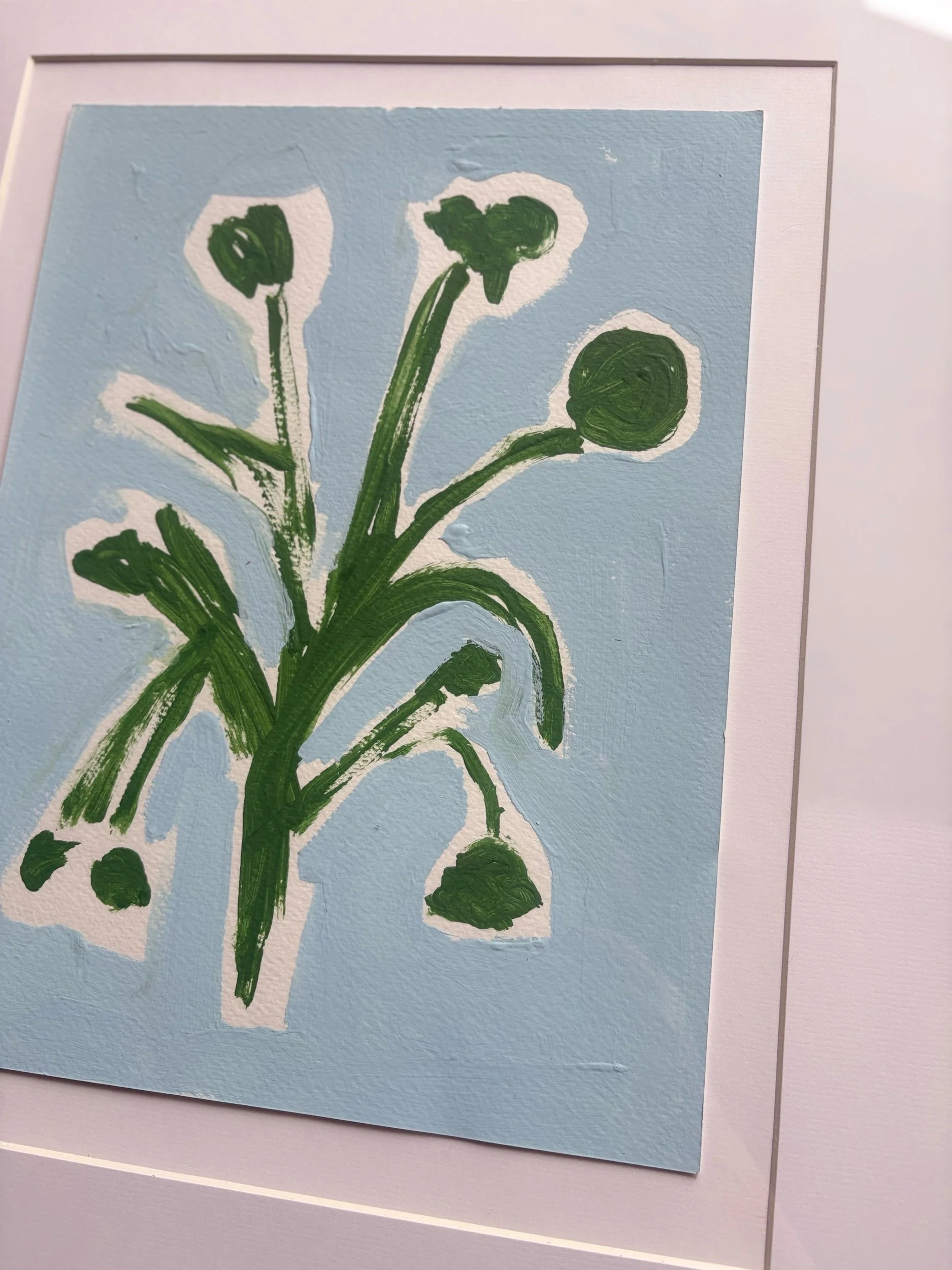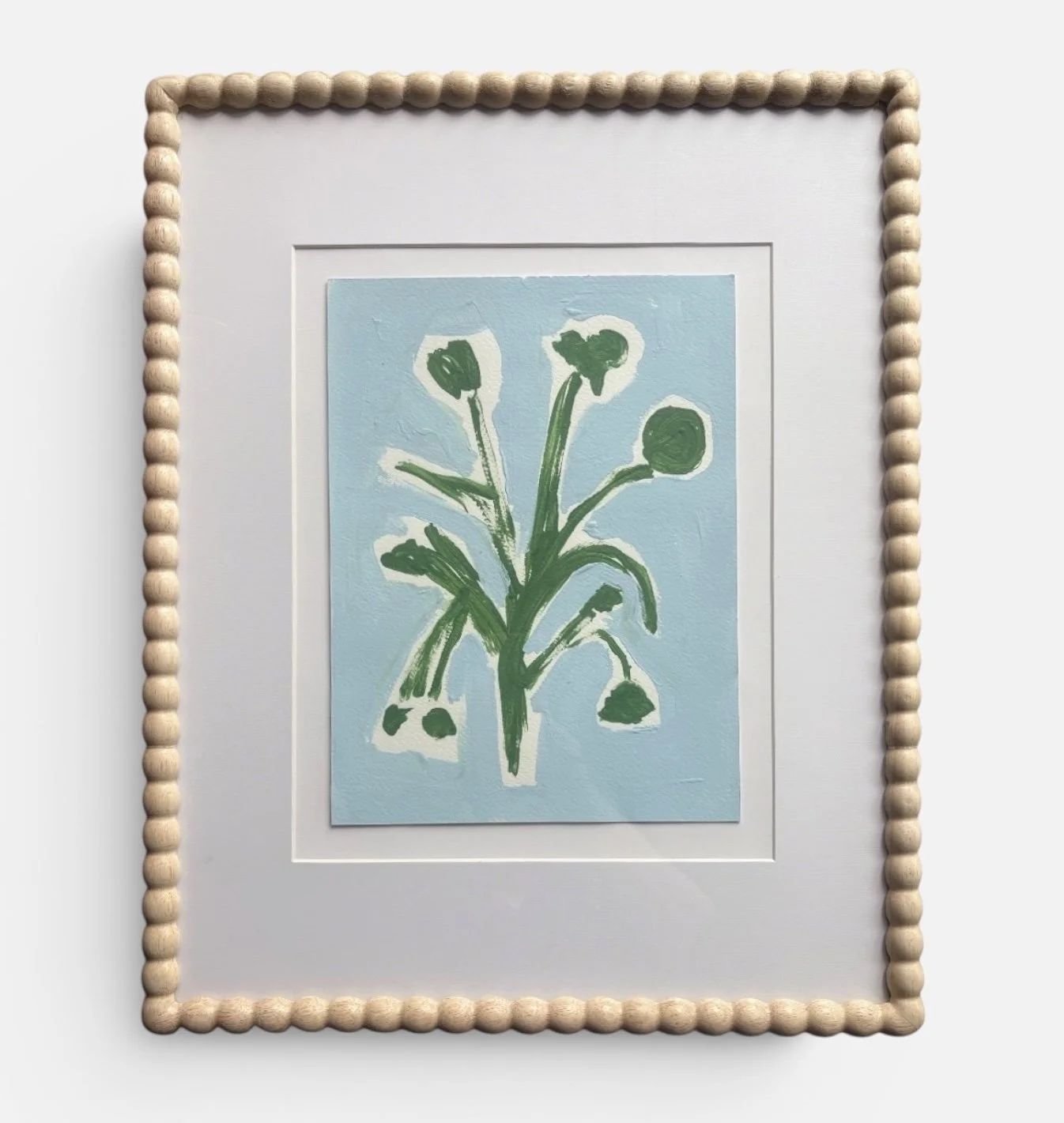 Acrylic on watercolor paper, wood frame, glass front.