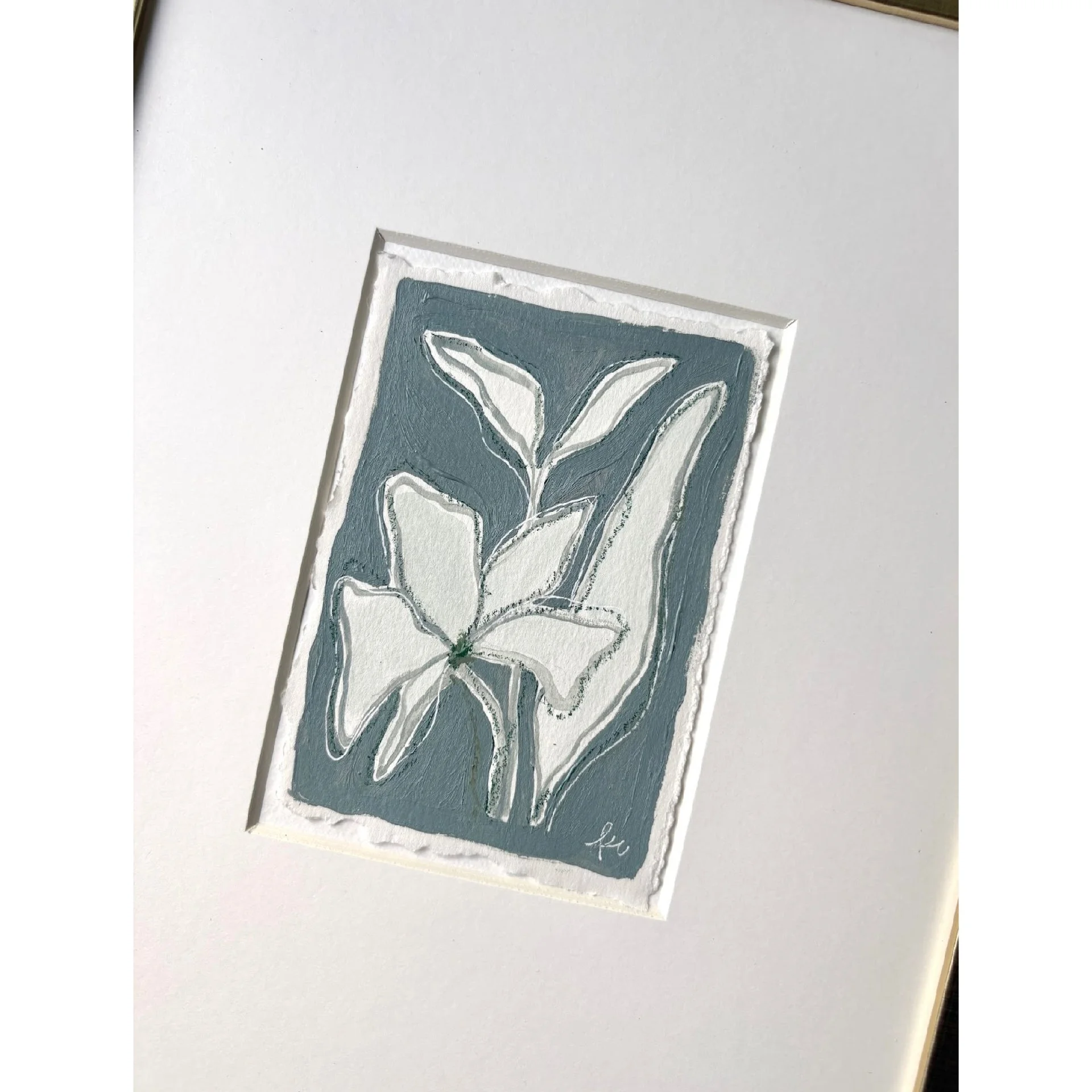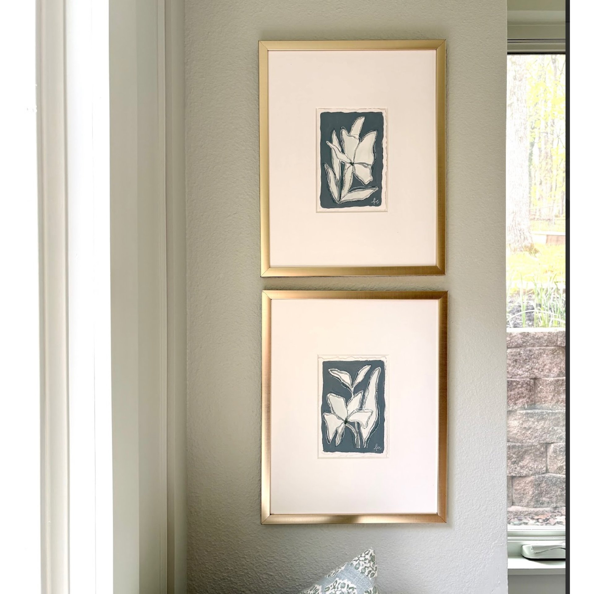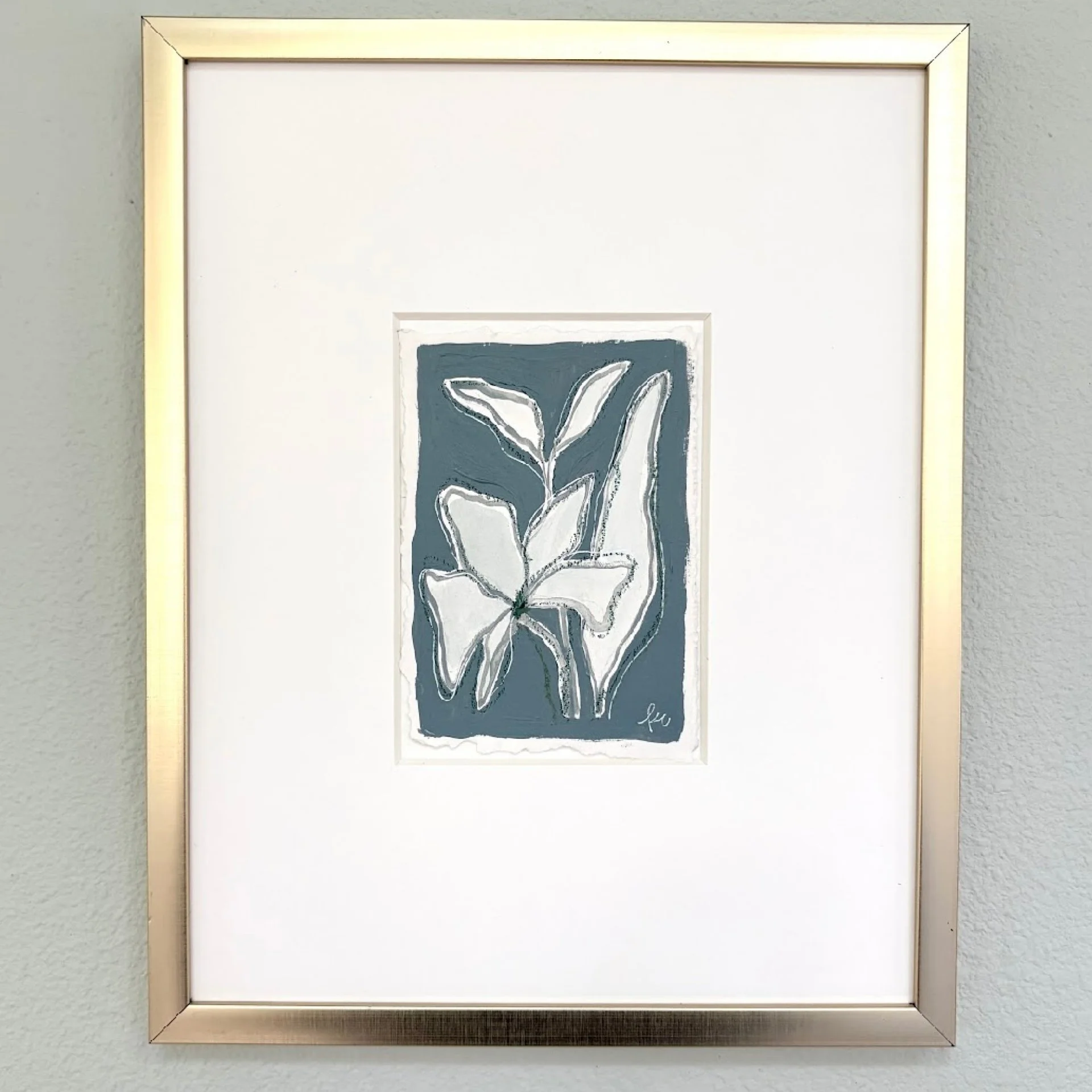 12 x 15 inch original artwork on hand torn paper. Floating in a gold frame.