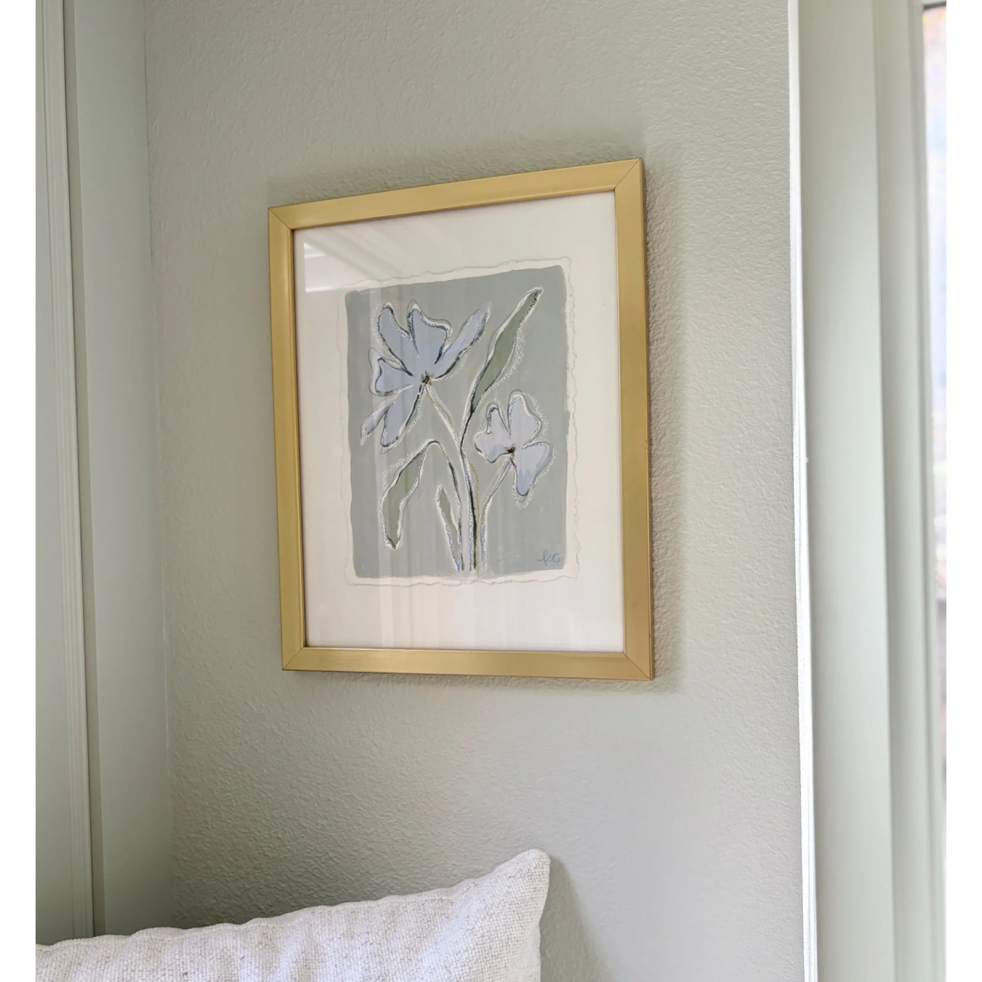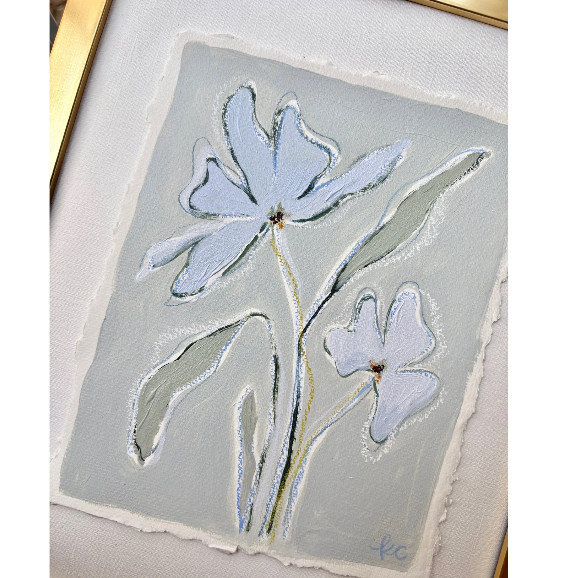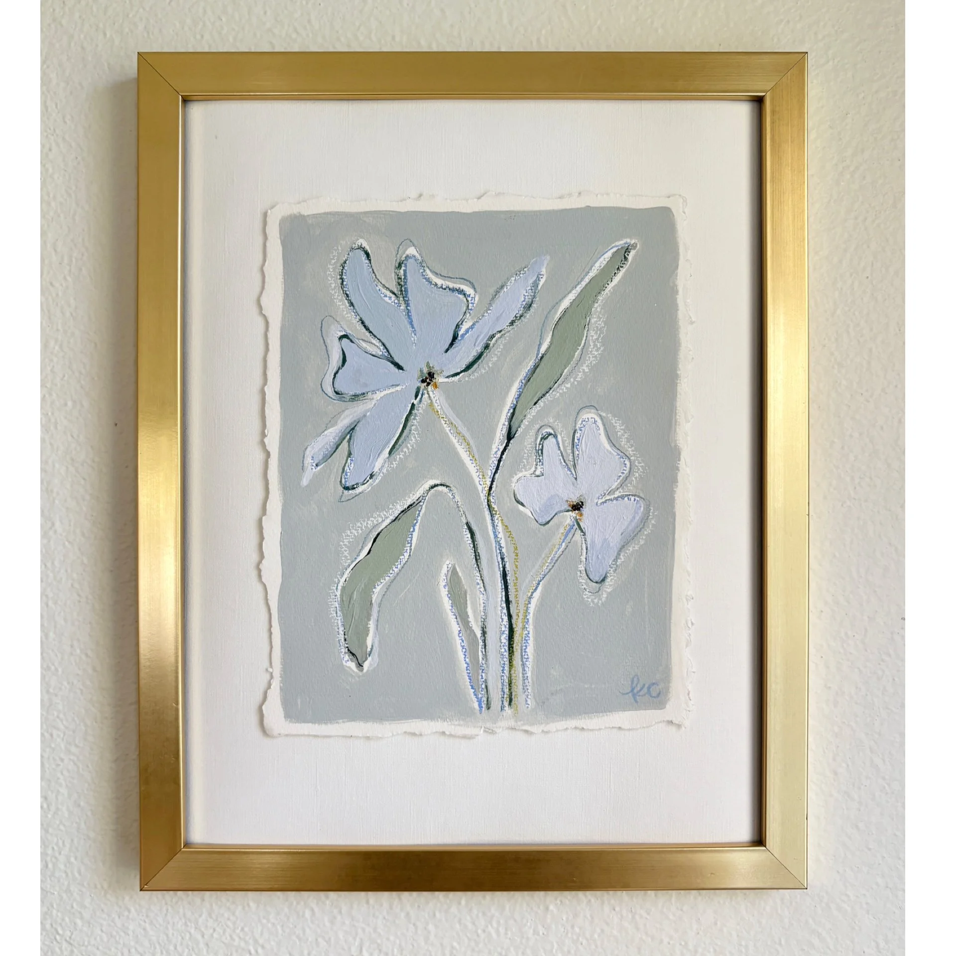 Original artwork on 8 x 10 inch hand torn paper, floating in a gold metal frame.