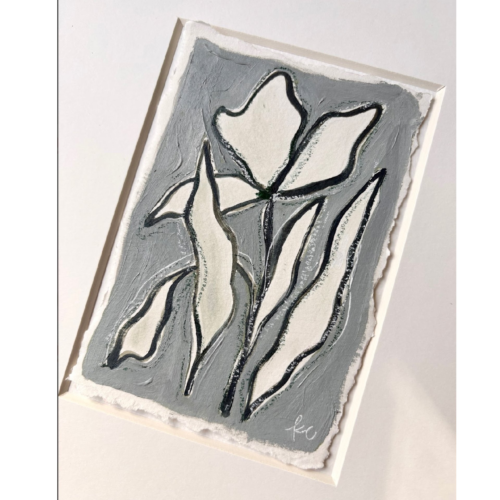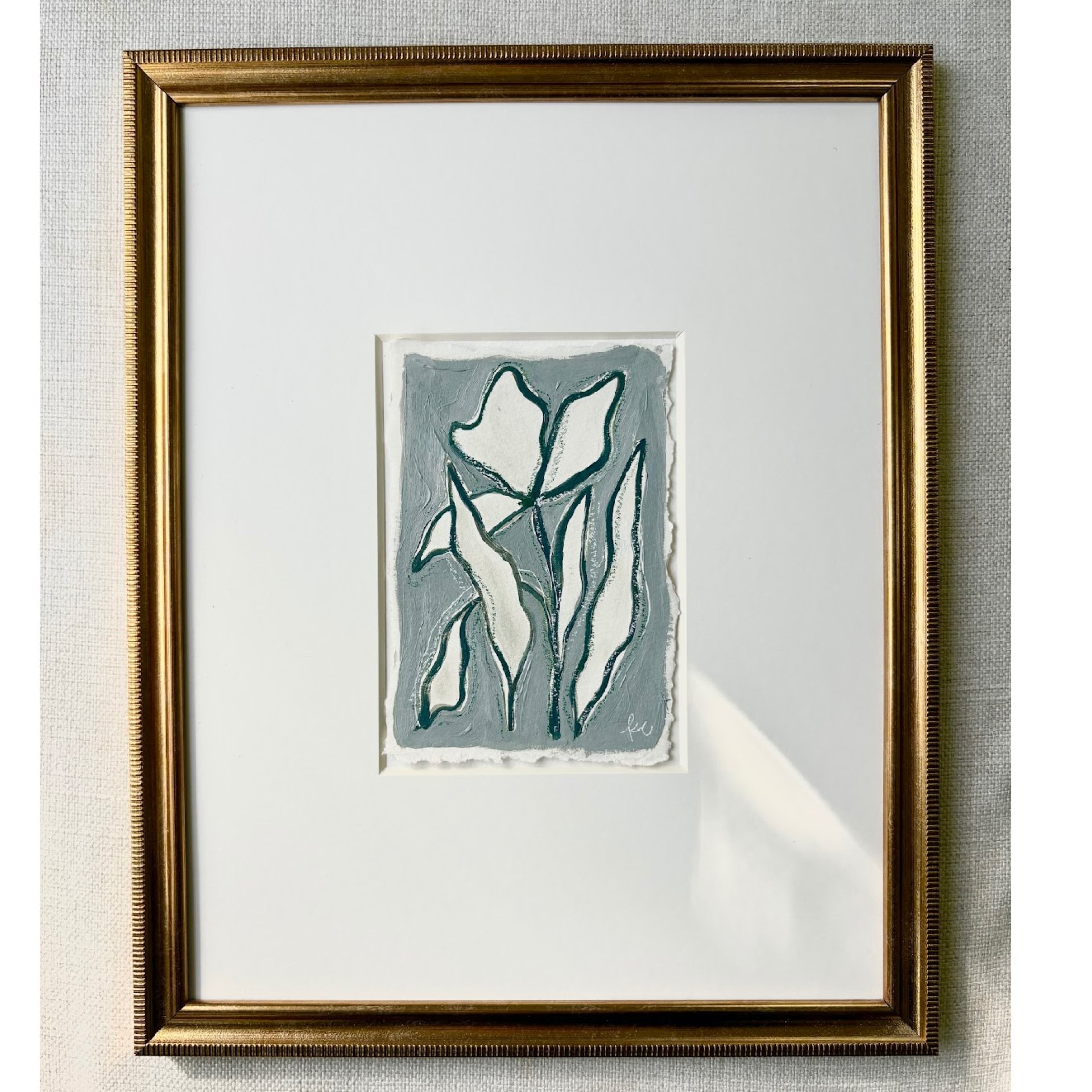 12 x 15 inch original artwork on hand torn paper. Floating in a gold frame.
