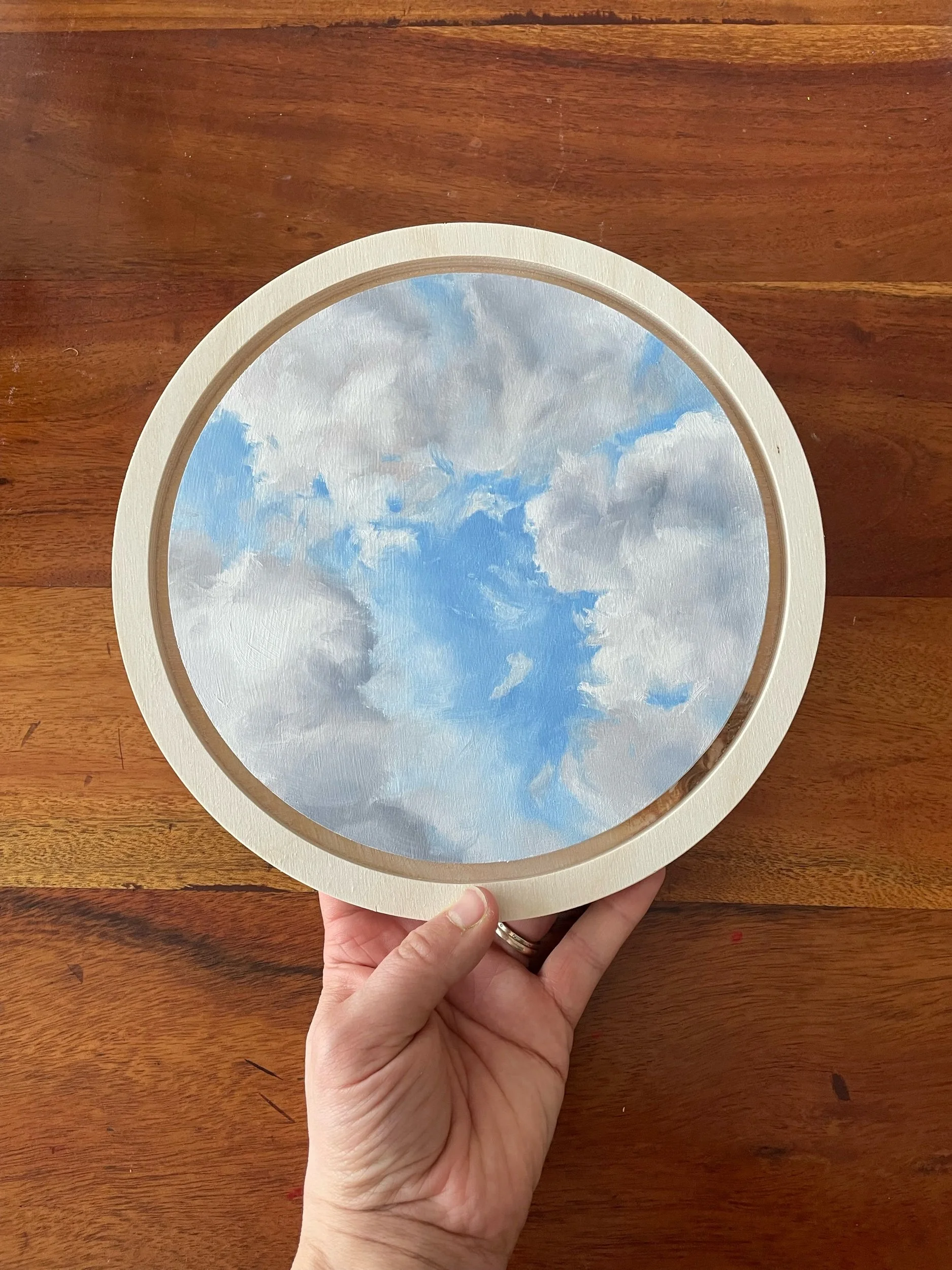Original oil on 8” wood panel in a natural wood frame. Ready to hang.