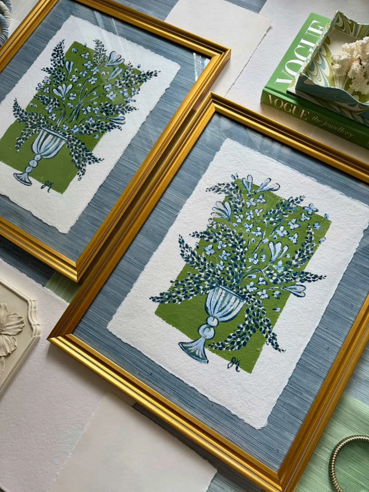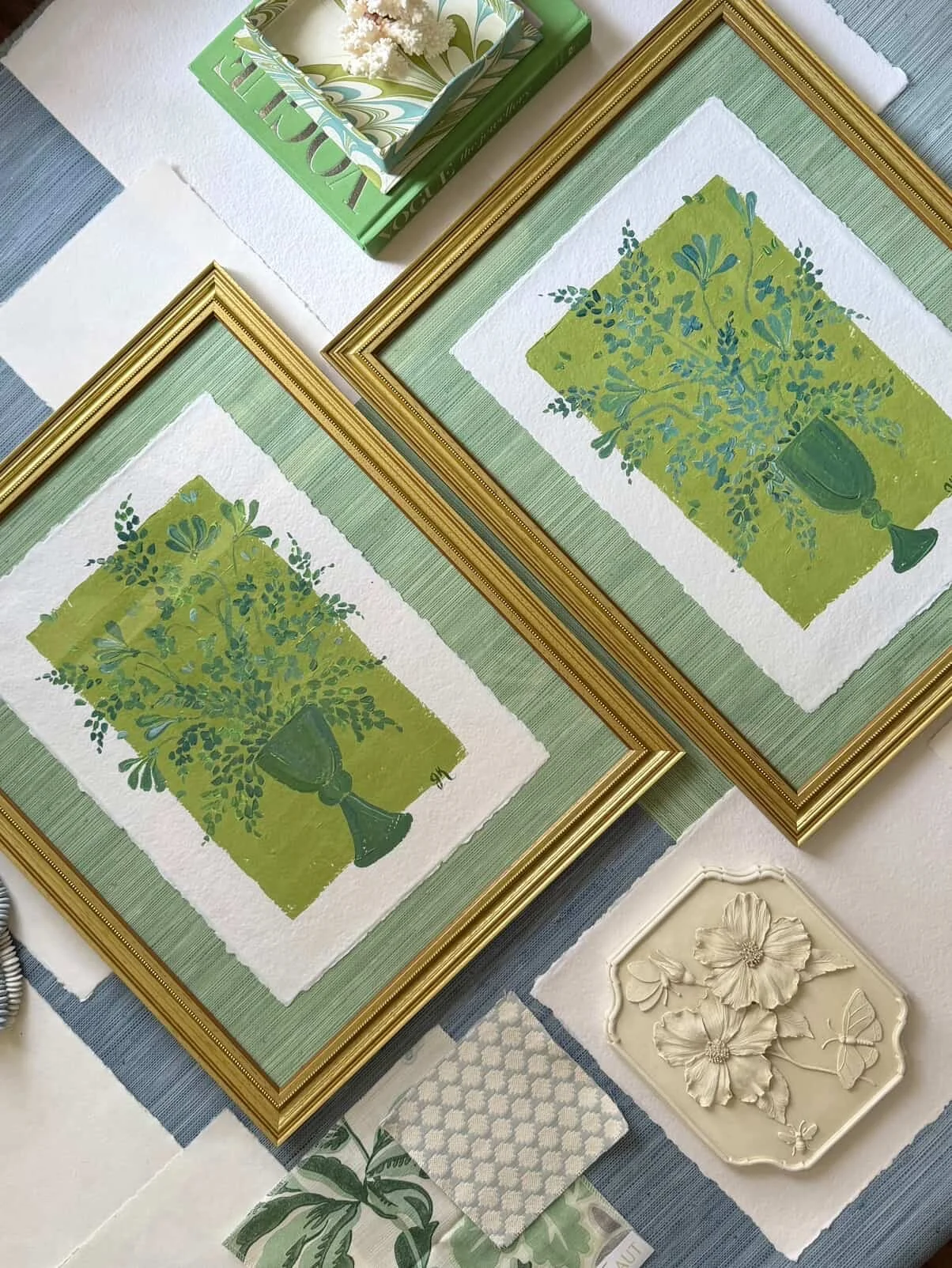 Hand painted floral on textured mat