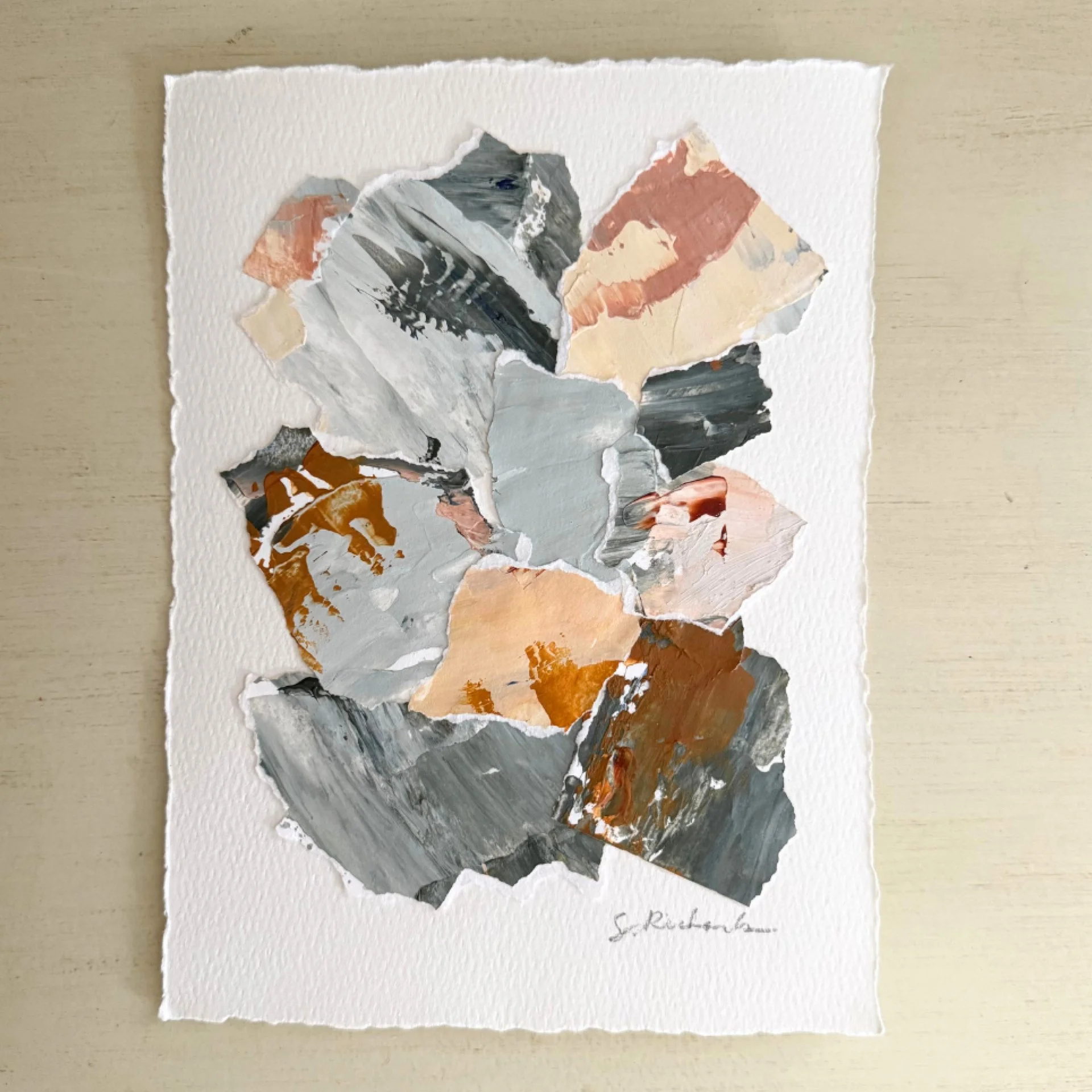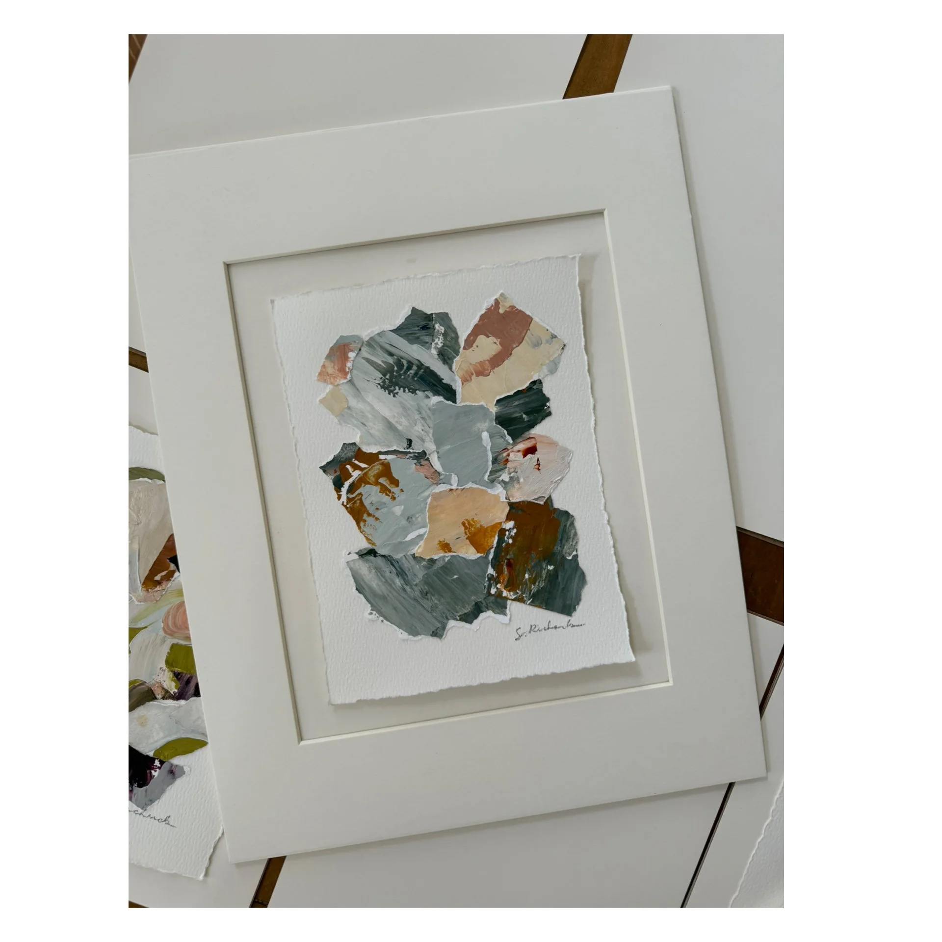 Mixed media paper with deckled or natural edges 6 x 8 inches in size mounted onto 8 × 10 paper. Can be purchased matted or matted and framed.