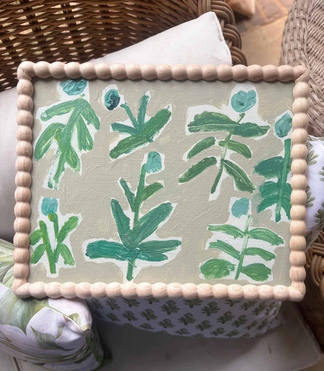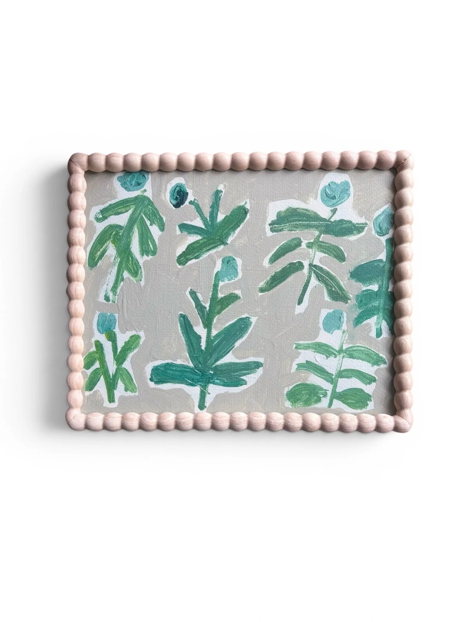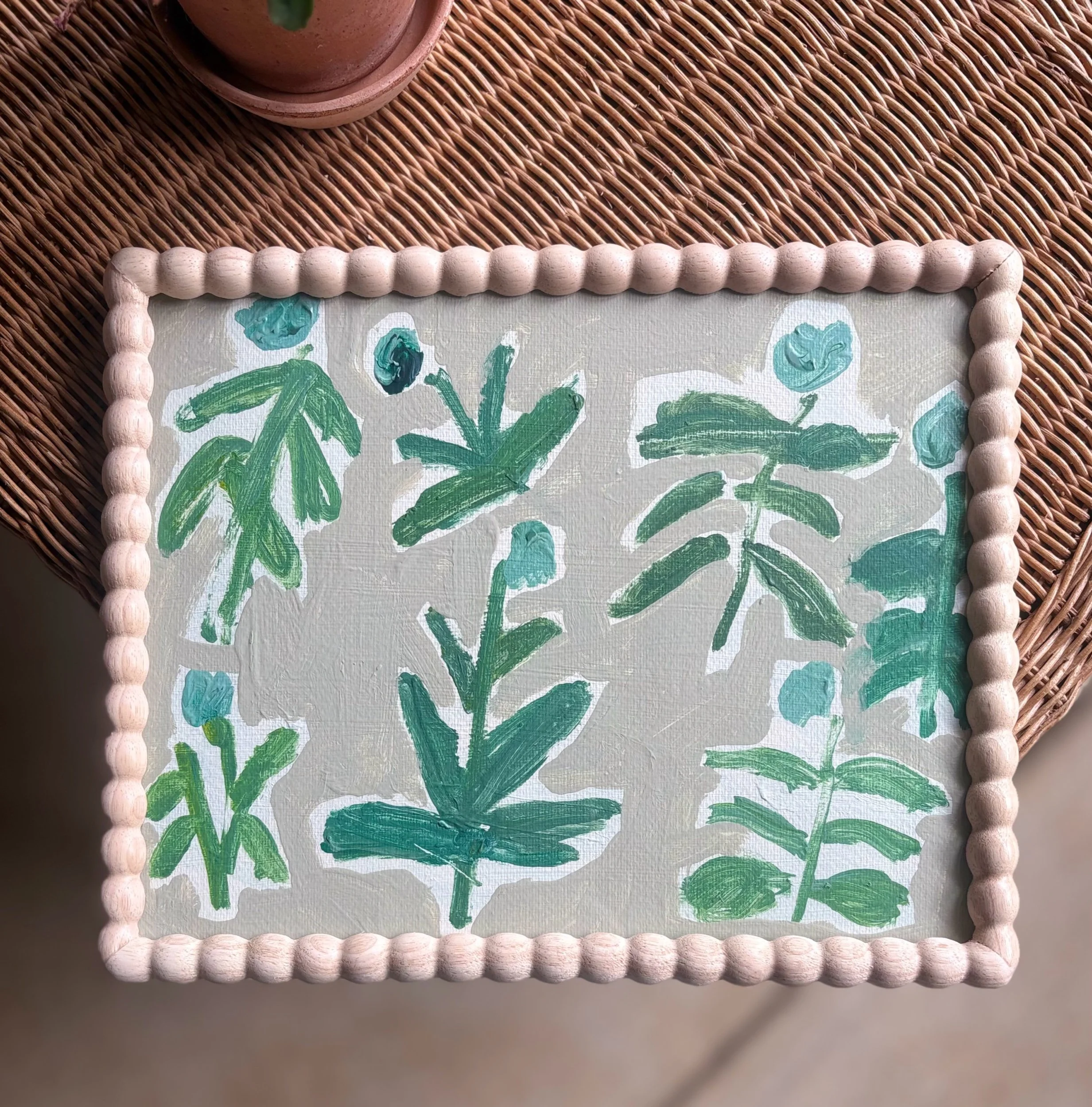 Acrylic on watercolor paper, wood frame, glass front.