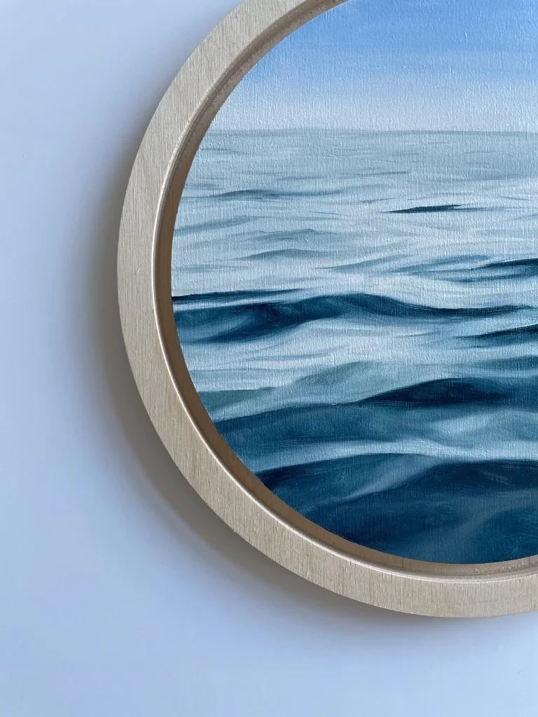 Original oil on 8” wood panel in a natural wood frame. Ready to hang.