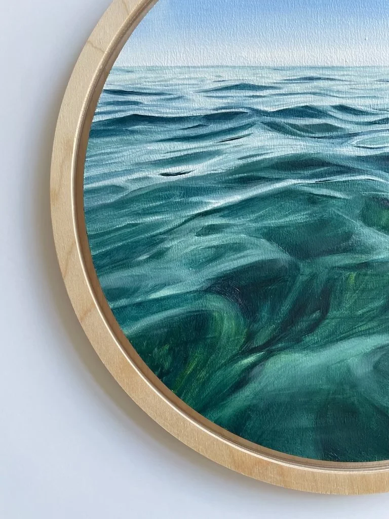 Original oil on 12” wood panel in a natural wood frame. Ready to hang.