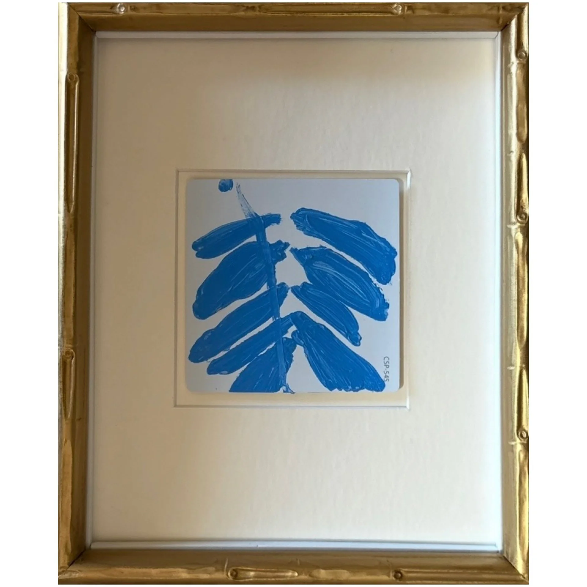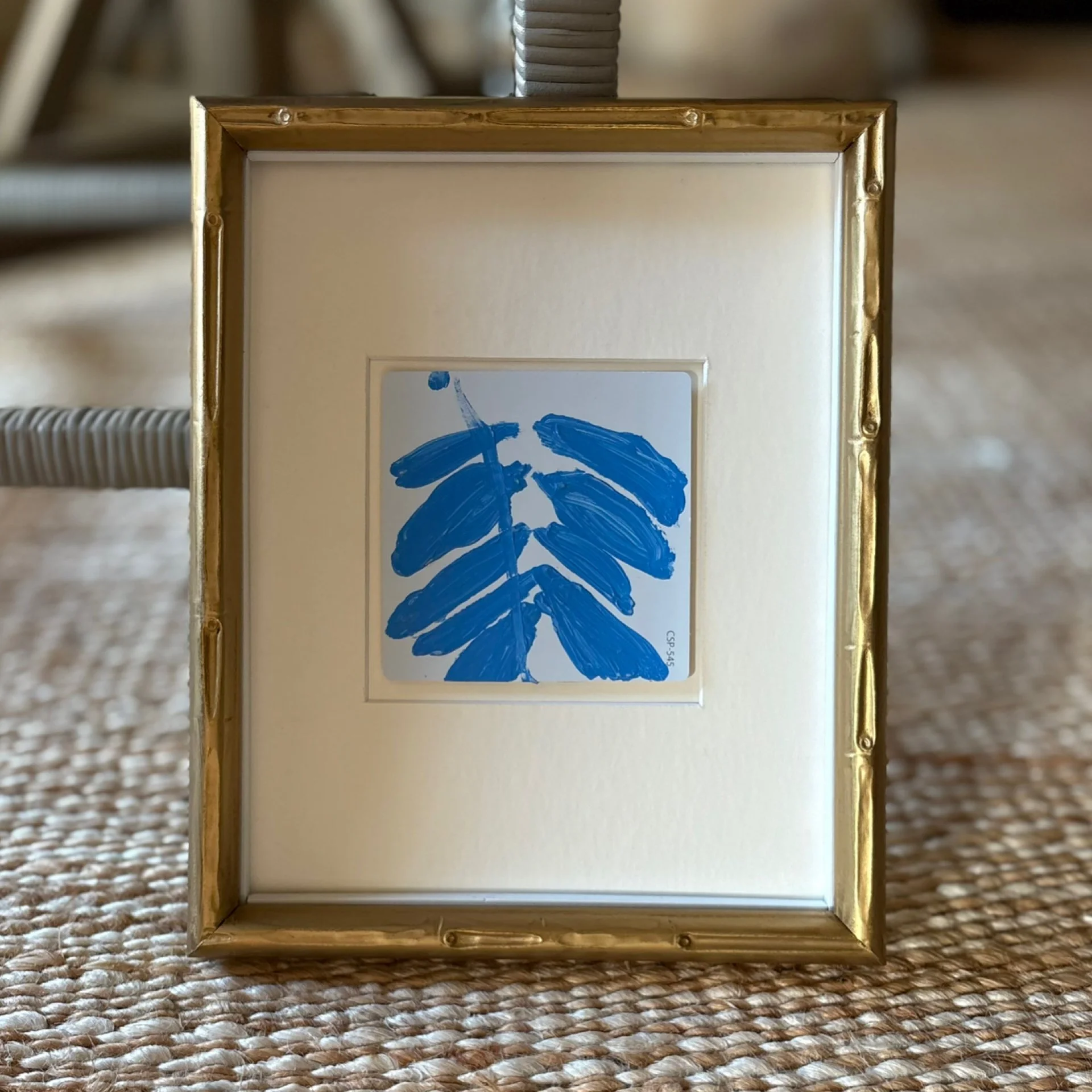 A whimsical abstract Southern botanical painted on a Benjamin Moore paint chip (Sheer Bliss), set in a gold bamboo-style frame with custom matting.
