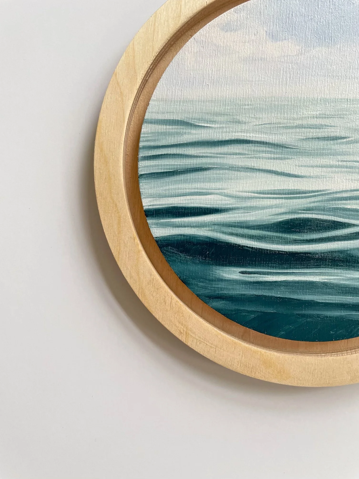 Original oil on 6” wood panel in a natural wood frame. Ready to hang.