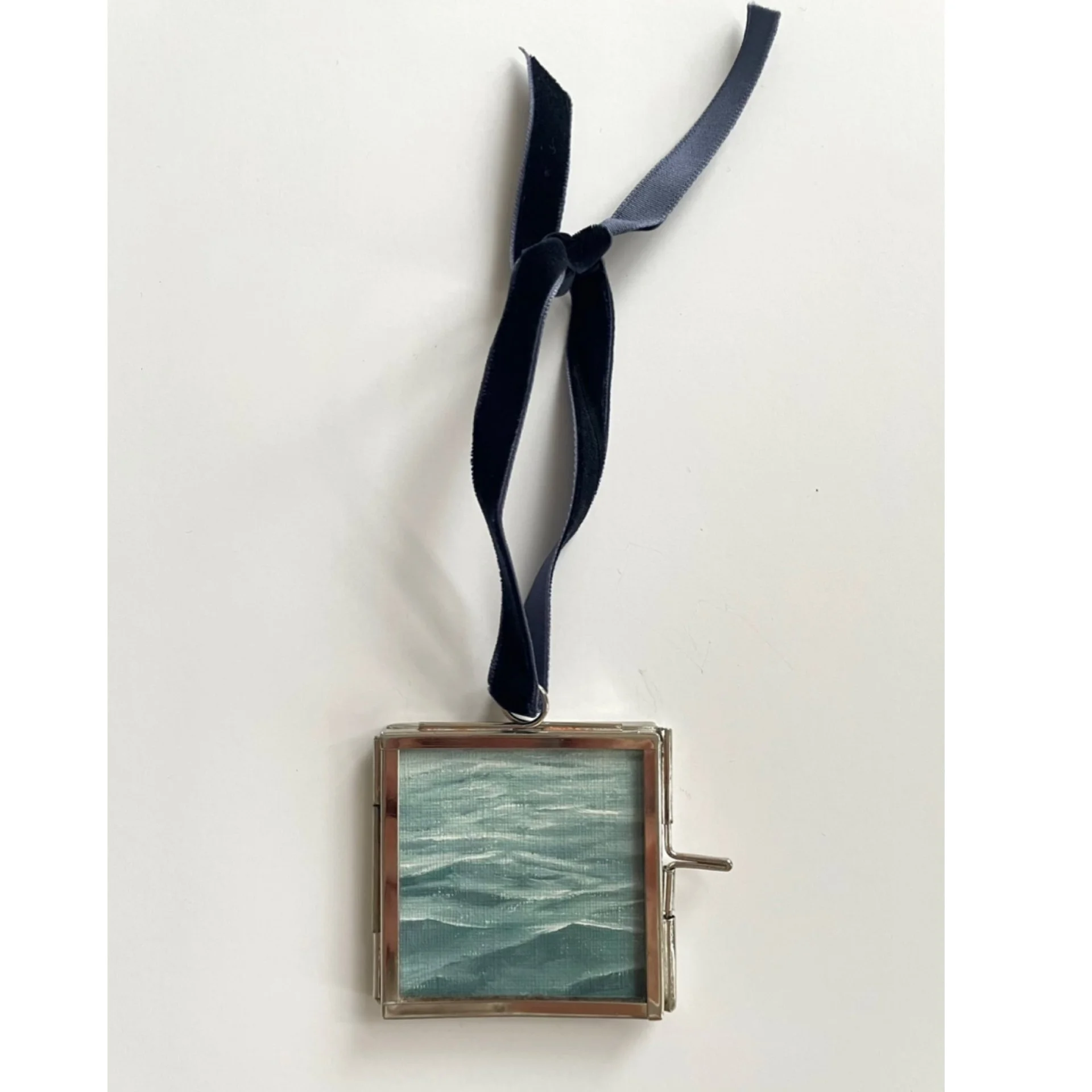 Original oil painting on fine art paper, signed on back, framed, and finished with a velvet ribbon.