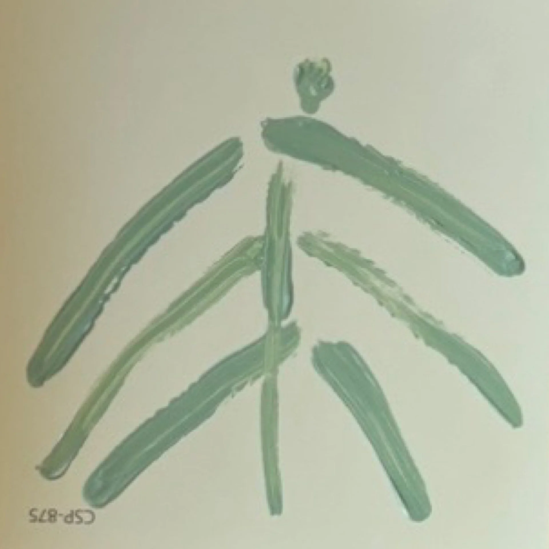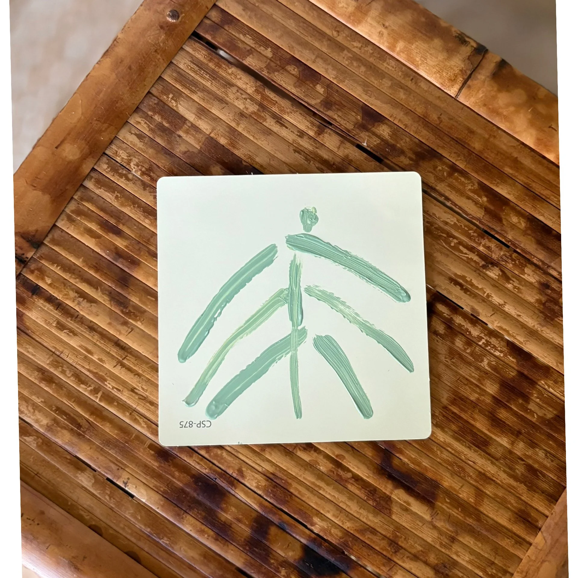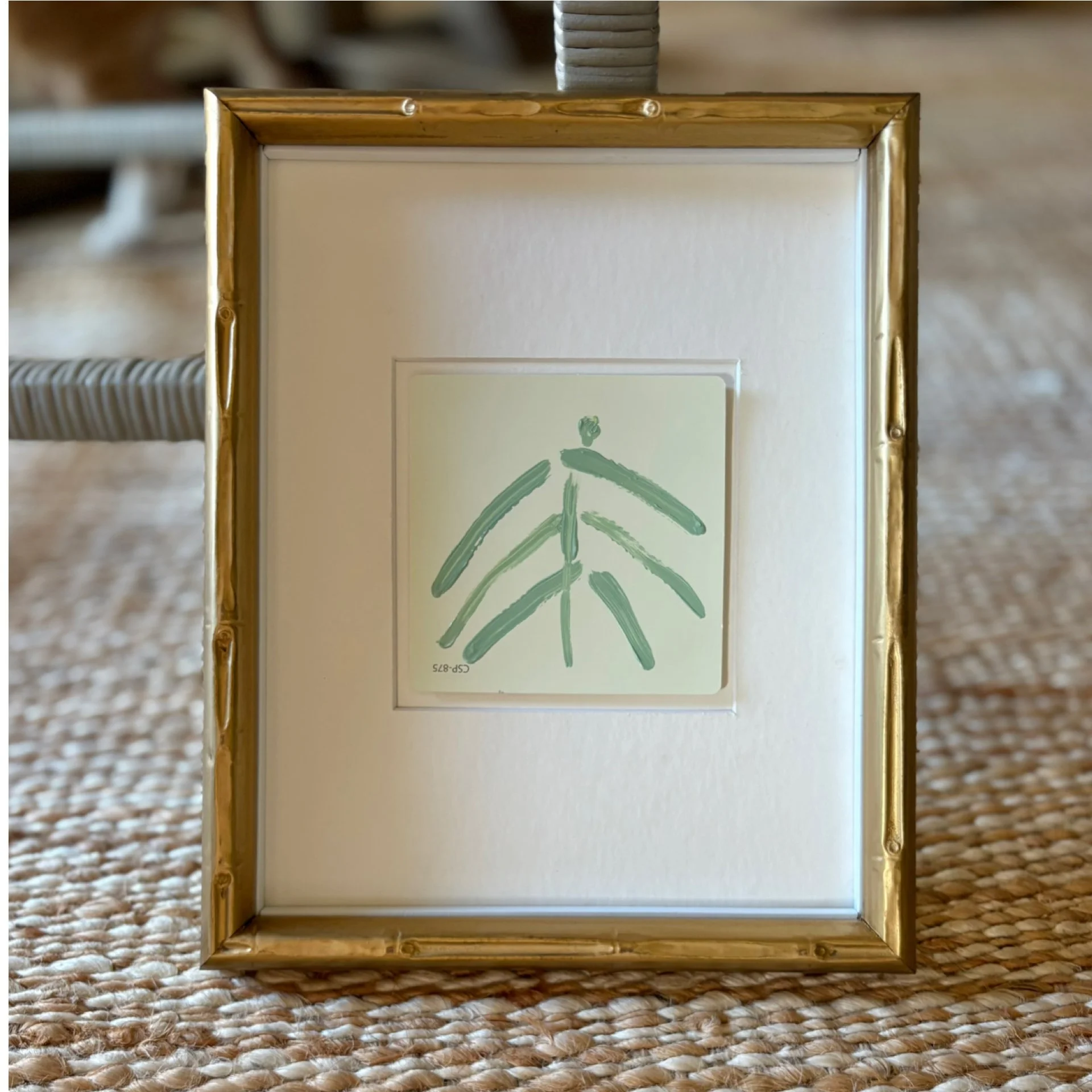 A whimsical abstract Southern botanical painted on a Benjamin Moore paint chip (Handmade Paper), set in a gold bamboo-style frame with custom matting.