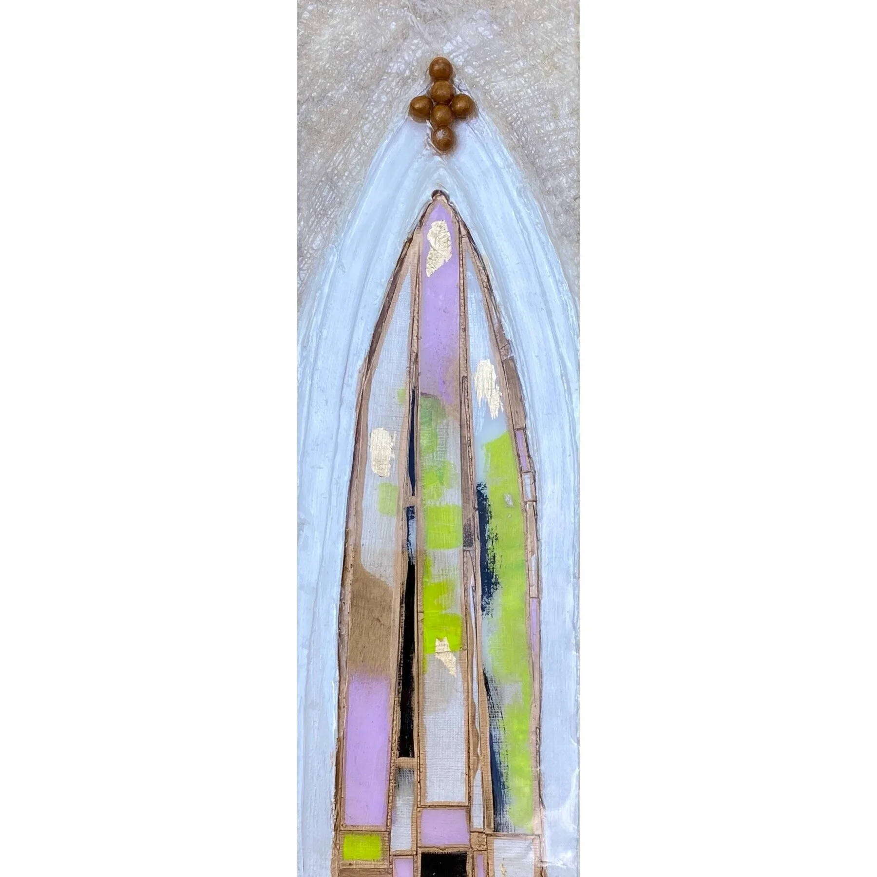 Hand Painted Collage with Hand Dyed Papers mixed with Papers Imported from Israel and Italy on Canvas. A Heavy Coat of Resin Seals It.