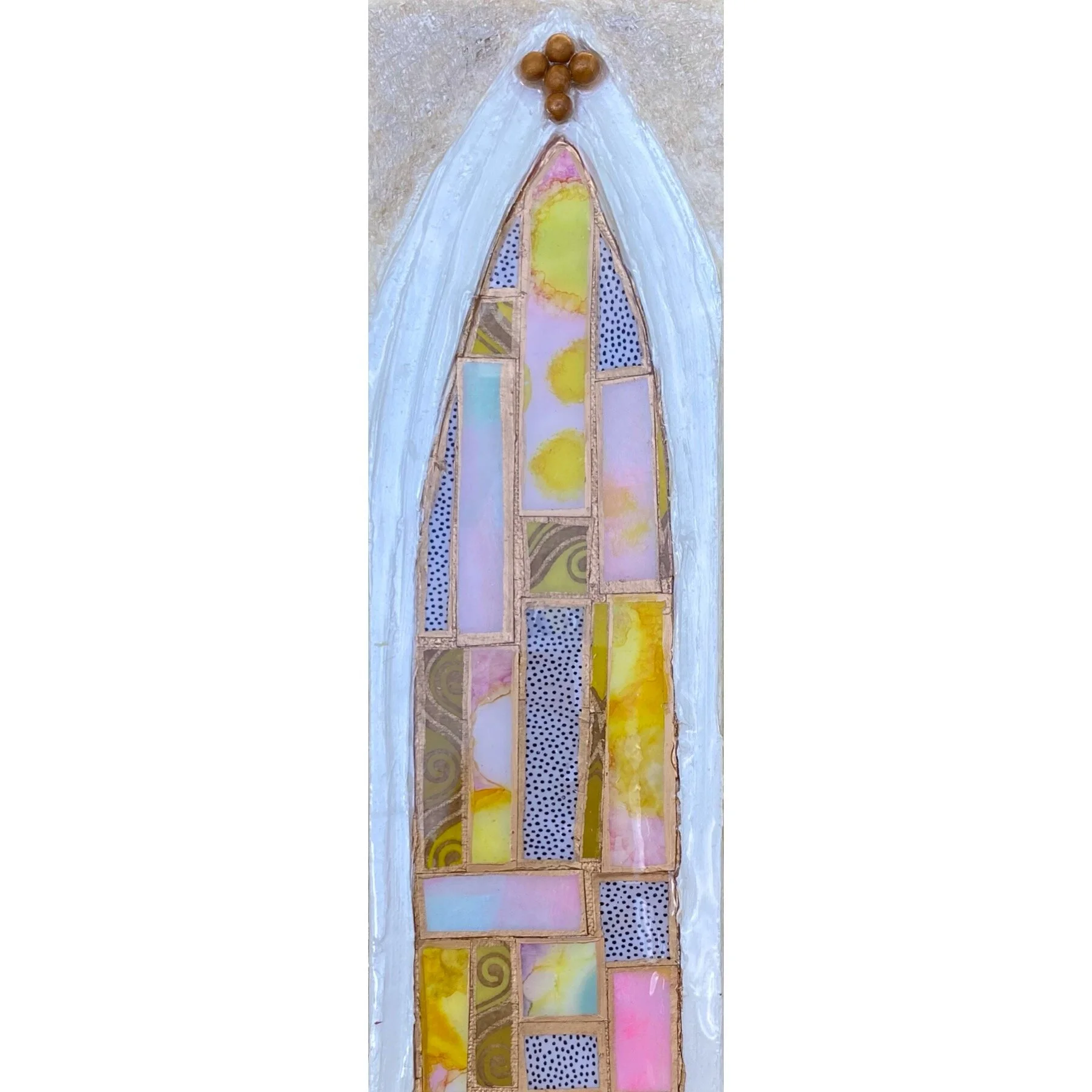 Hand Painted Collage with Hand Dyed Papers mixed with Papers Imported from Israel and Italy on Canvas. A Heavy Coat of Resin Seals It.