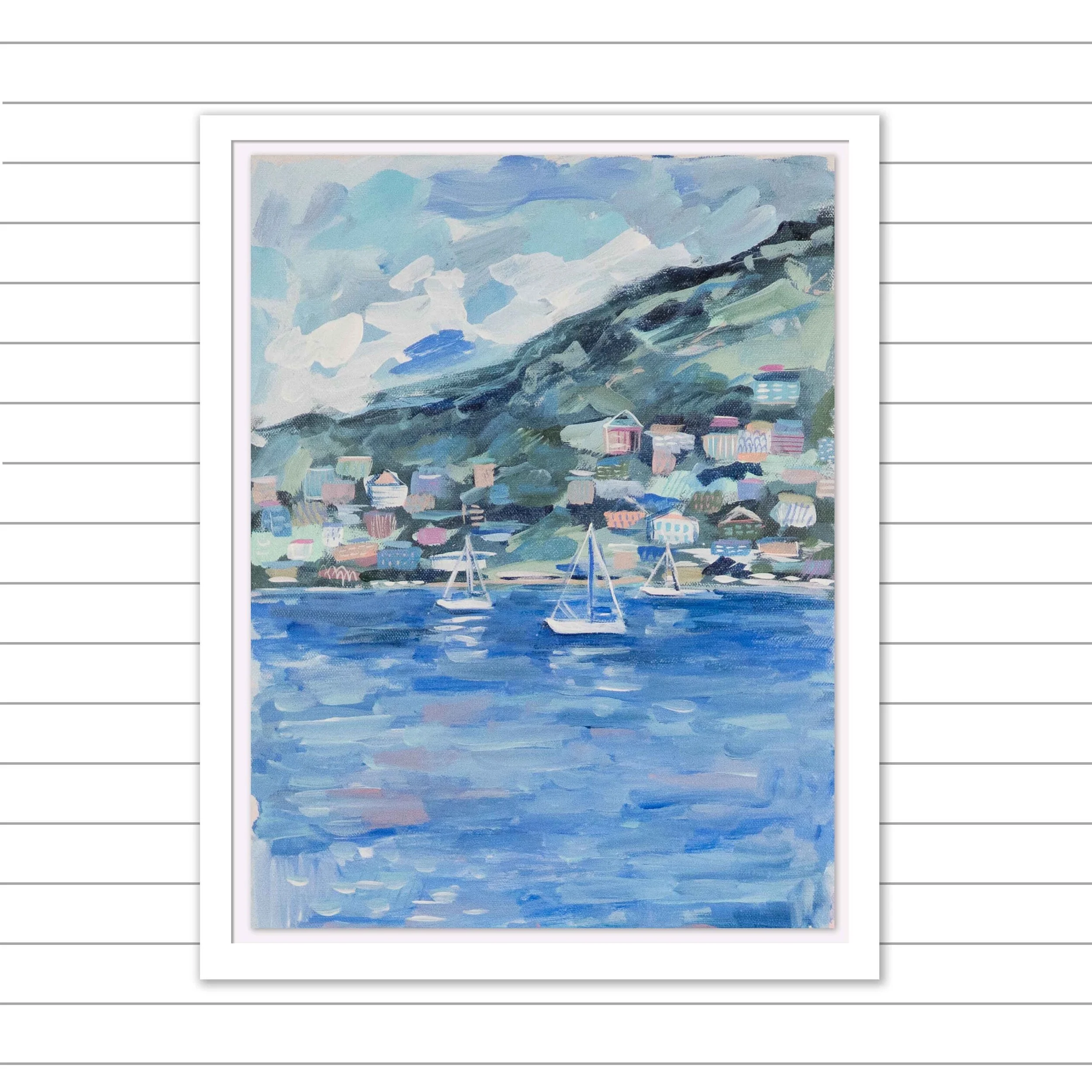 Acrylic on Canvas, Custom Framed in a White Wooden Frame