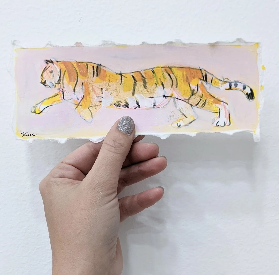 Mixed Media on Deckled Edge Paper, Framed in a Champagne Gold Frame