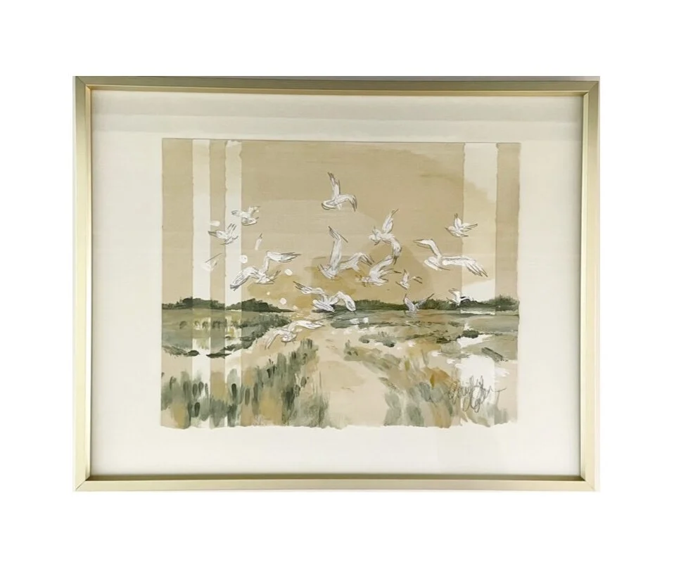Acrylic on Handmade Paper, Mounted, and Framed in Gold