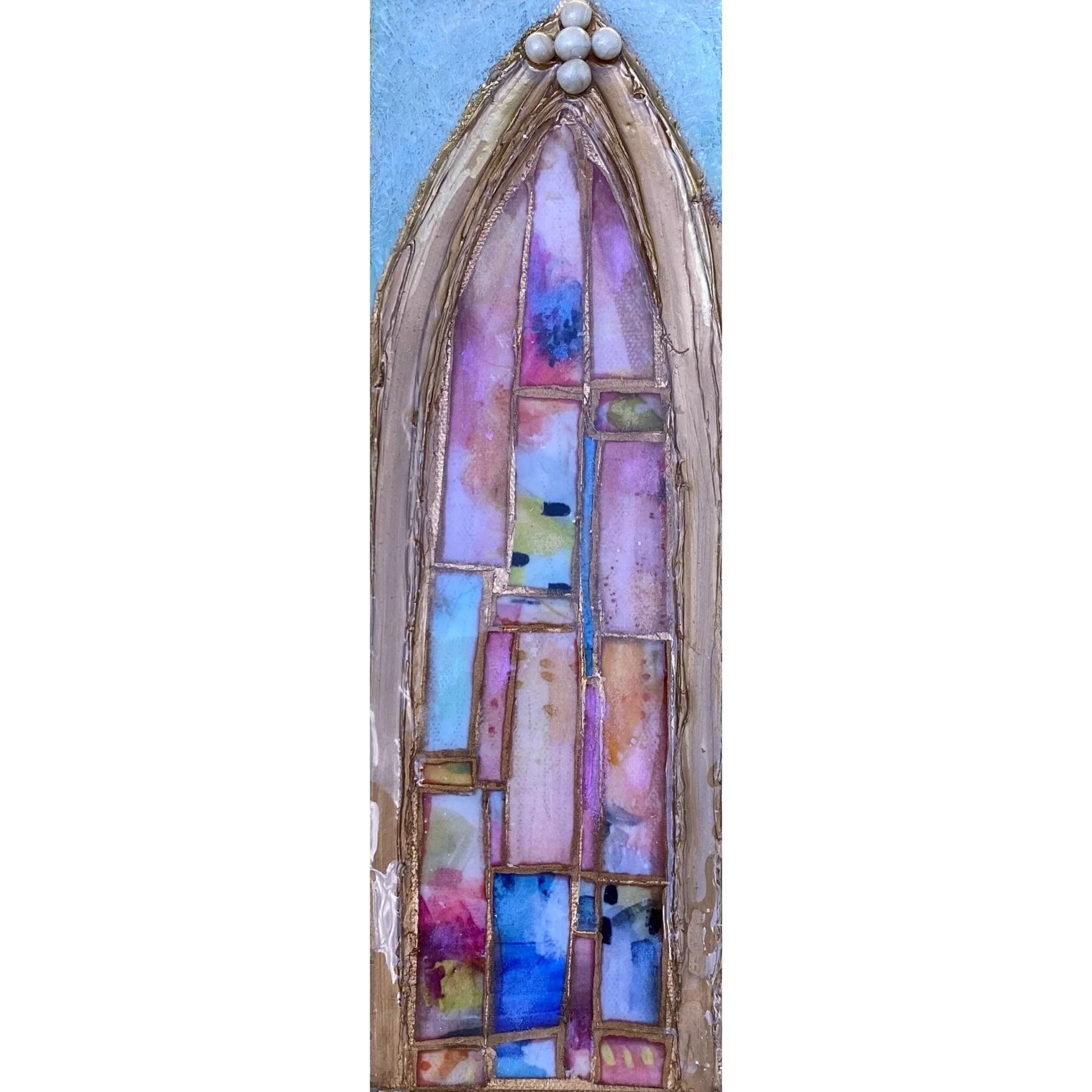 Hand Painted Collage with Hand Dyed Papers mixed with Papers Imported from Israel and Italy on Canvas. A Heavy Coat of Resin Seals It.
