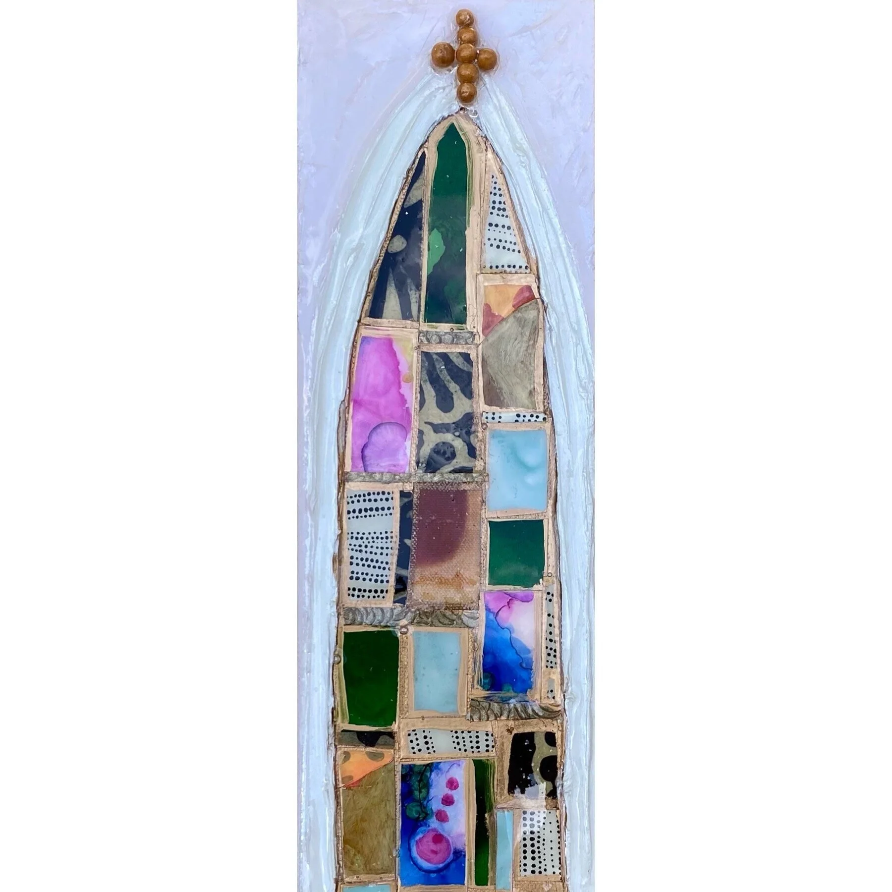 Hand Painted Collage with Hand Dyed Papers mixed with Papers Imported from Israel and Italy on Canvas. A Heavy Coat of Resin Seals It.