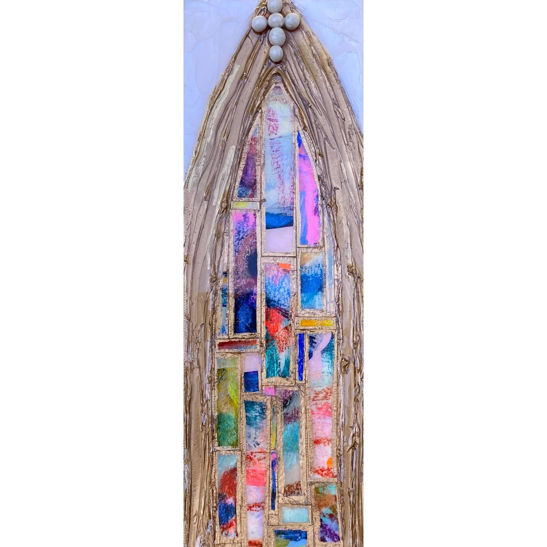 Hand Painted Collage with Hand Dyed Papers mixed with Papers Imported from Israel and Italy on Canvas. A Heavy Coat of Resin Seals It.