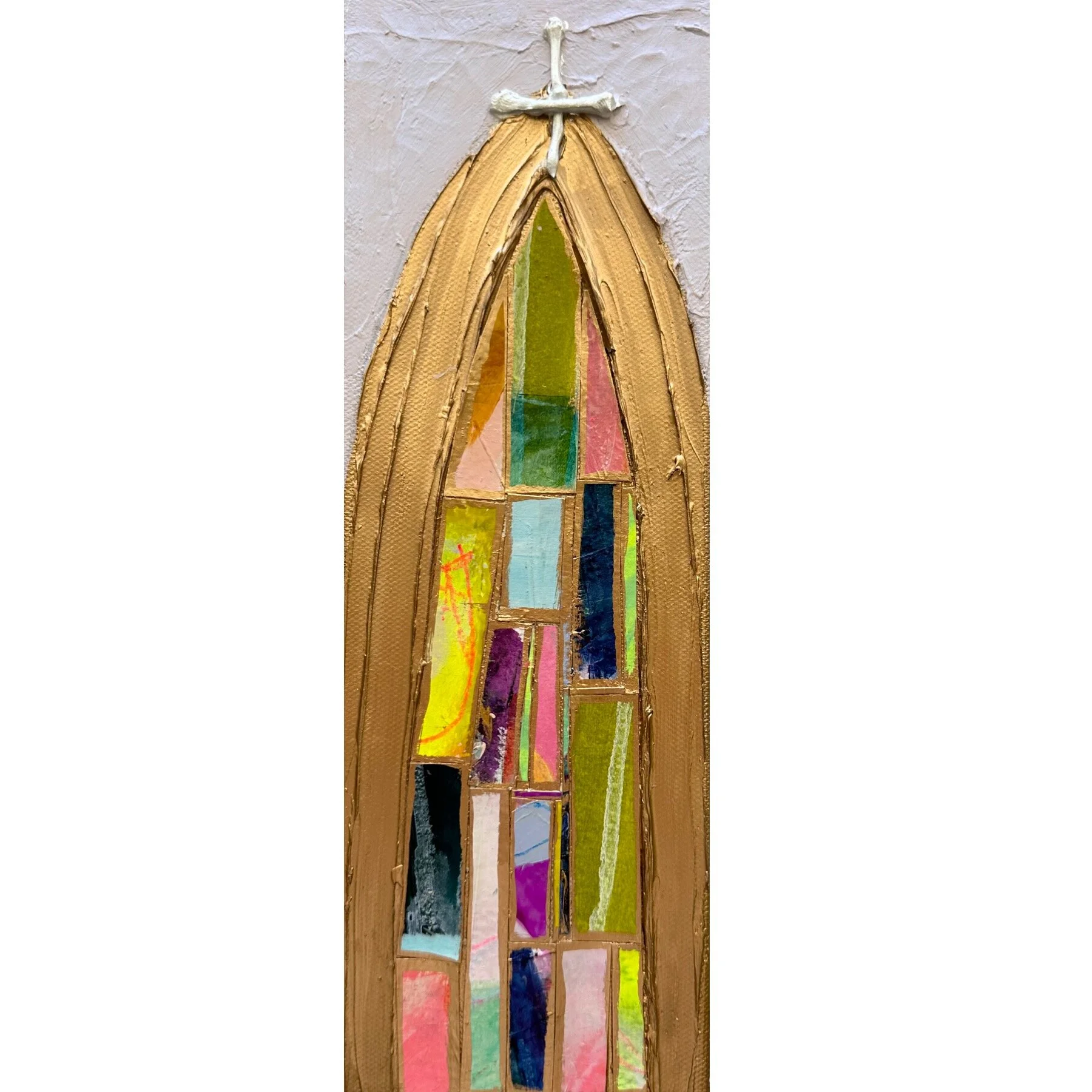 Hand Painted Collage with Hand Dyed Papers mixed with Papers Imported from Israel and Italy on Canvas. A Heavy Coat of Resin Seals It.