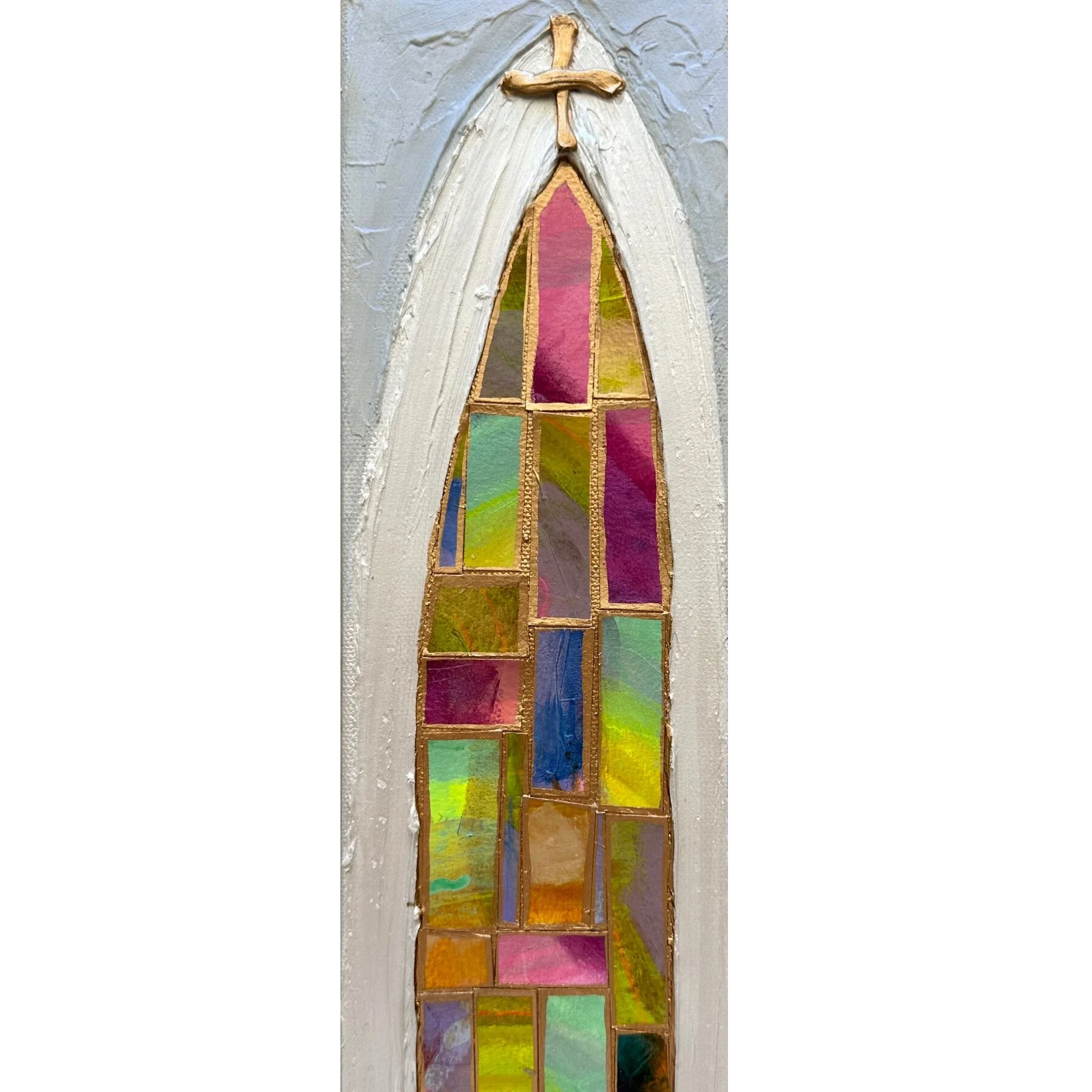 Hand Painted Collage with Hand Dyed Papers mixed with Papers Imported from Israel and Italy on Canvas. A Heavy Coat of Resin Seals It.