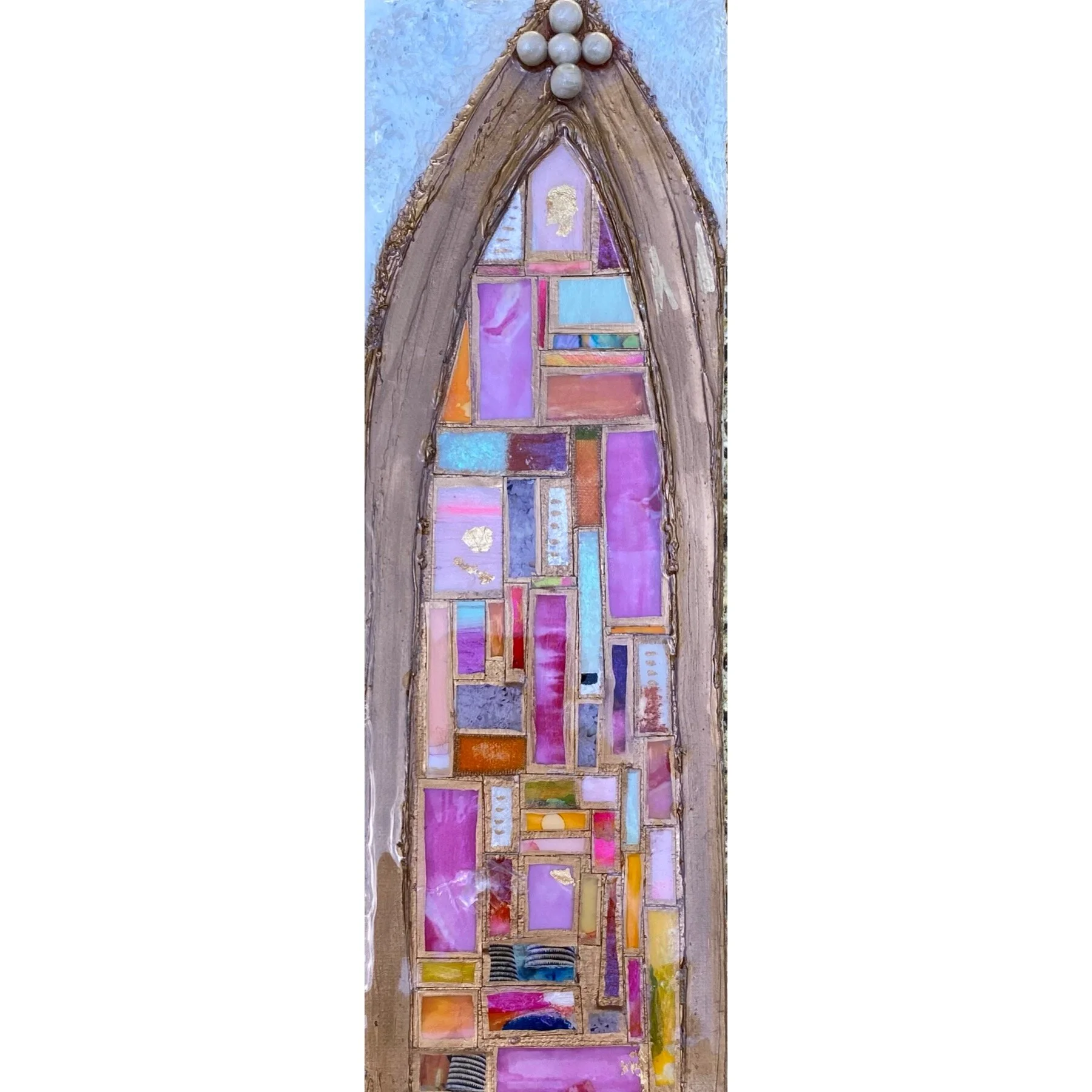 Hand Painted Collage with Hand Dyed Papers mixed with Papers Imported from Israel and Italy on Canvas. A Heavy Coat of Resin Seals It.