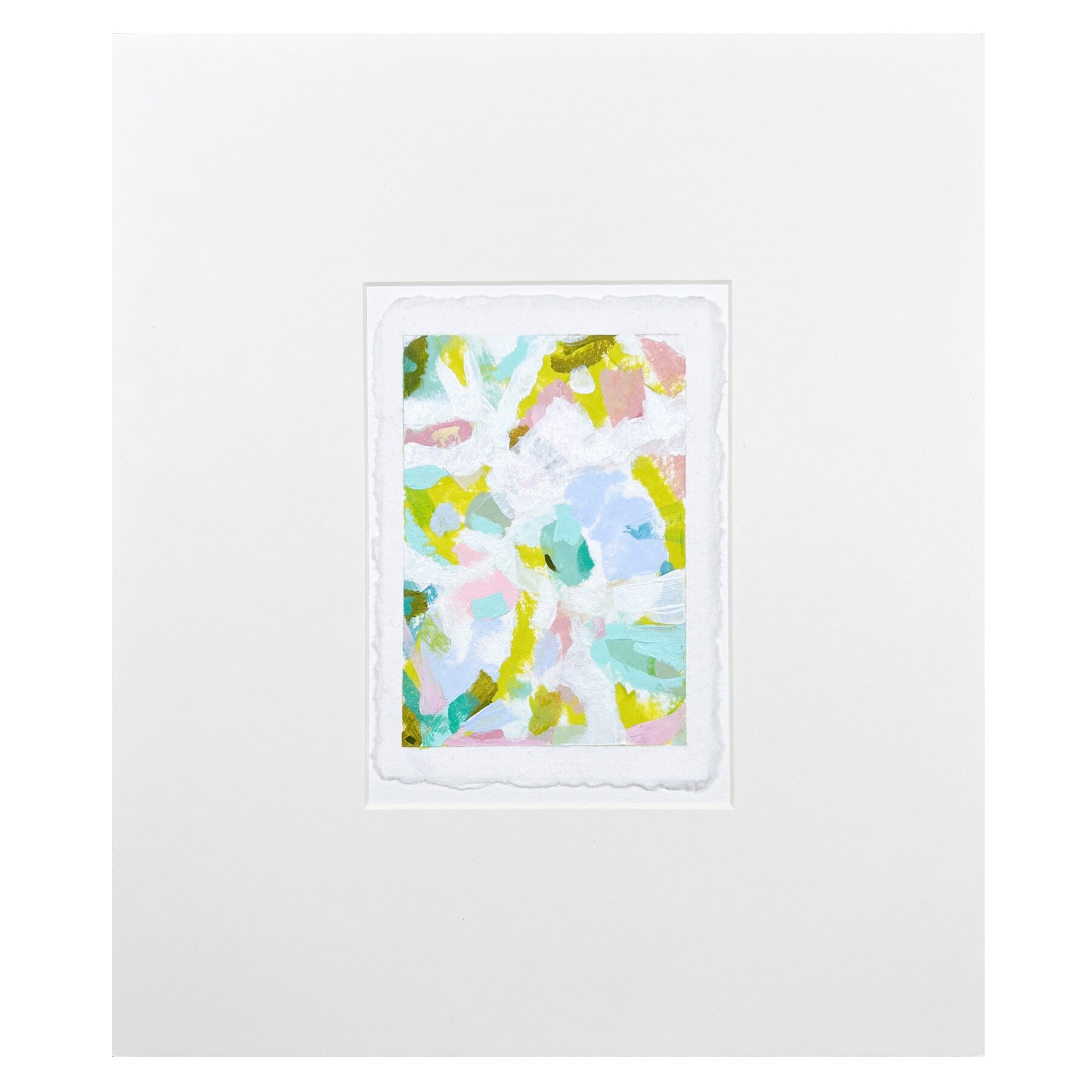 Gouache with Charvin Acrylics on Handmade Deckled Paper in a Brushed Gold Frame with Removable Easel Back/Hooks Attached for Option to Hang. Sour Cream Matte.