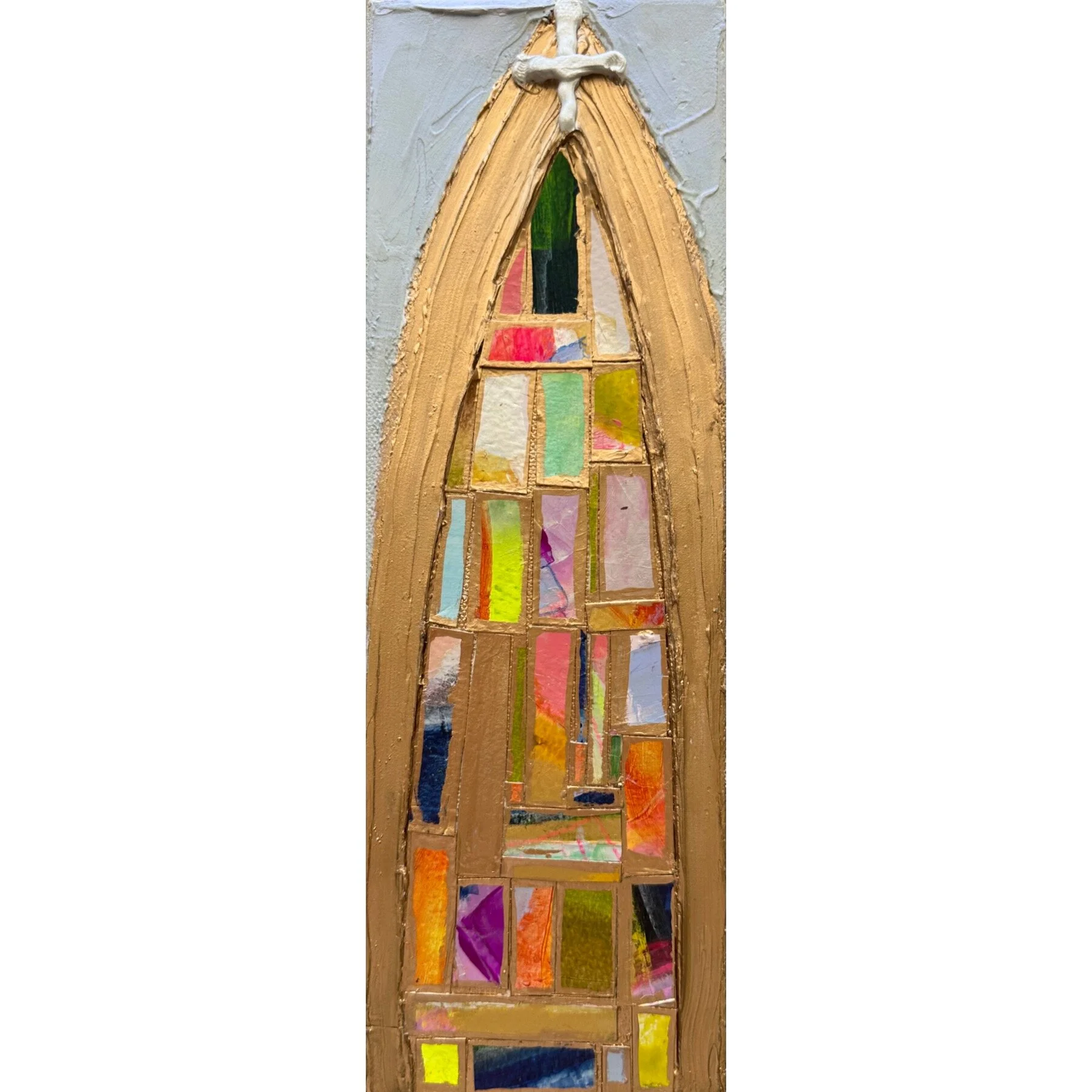 Hand Painted Collage with Hand Dyed Papers mixed with Papers Imported from Israel and Italy on Canvas. A Heavy Coat of Resin Seals It.