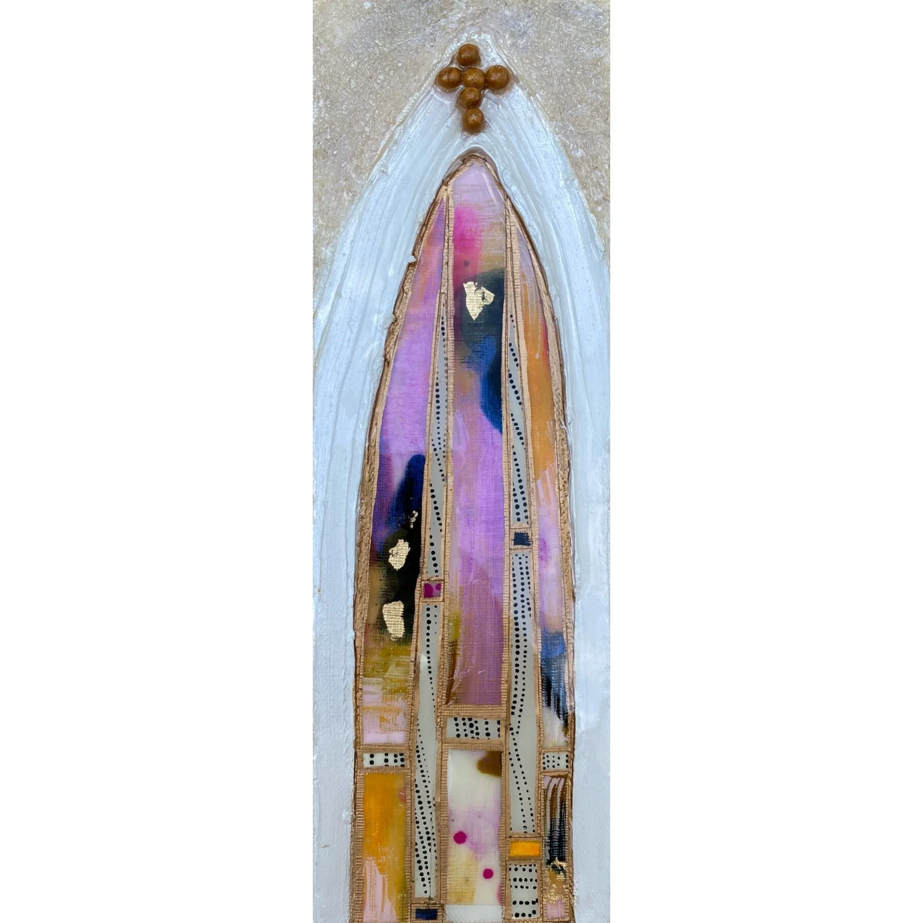 Hand Painted Collage with Hand Dyed Papers mixed with Papers Imported from Israel and Italy on Canvas. A Heavy Coat of Resin Seals It.