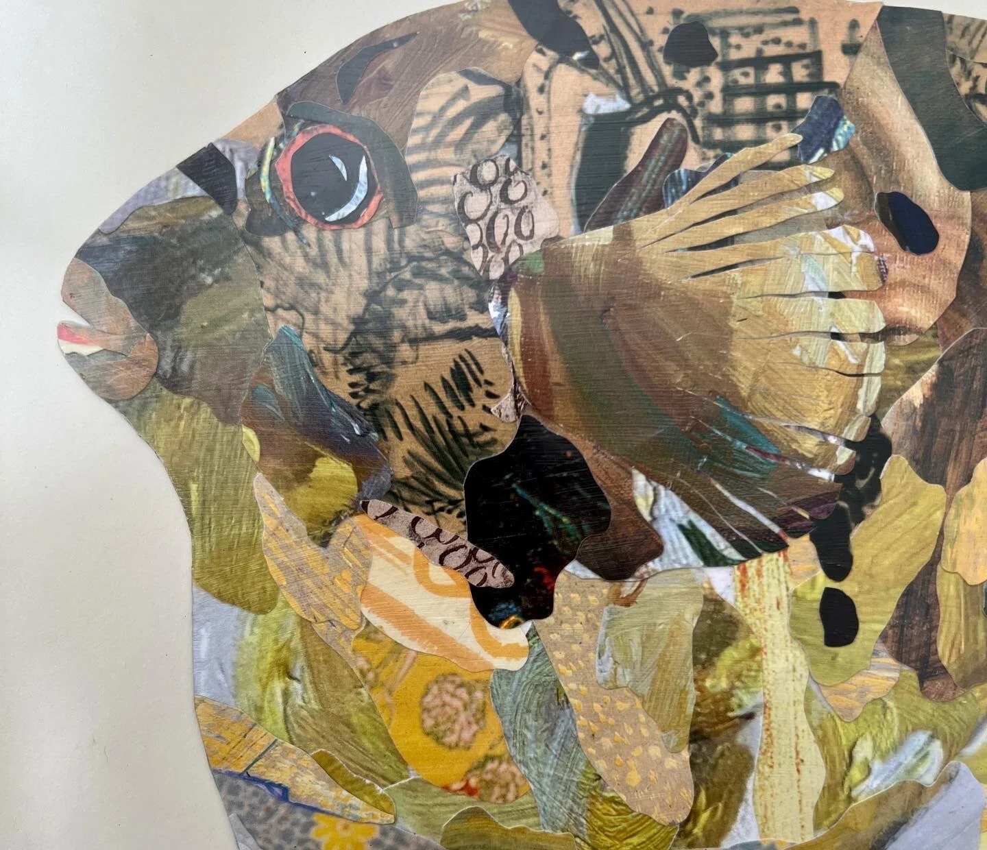 Mixed Media Collage, Custom Framed in European Beech. Frame depth is 1.5 Inches. Art is Sealed With Varnish and Mounted Under Non-Glare Acrylic. Wired and Ready To Hang.