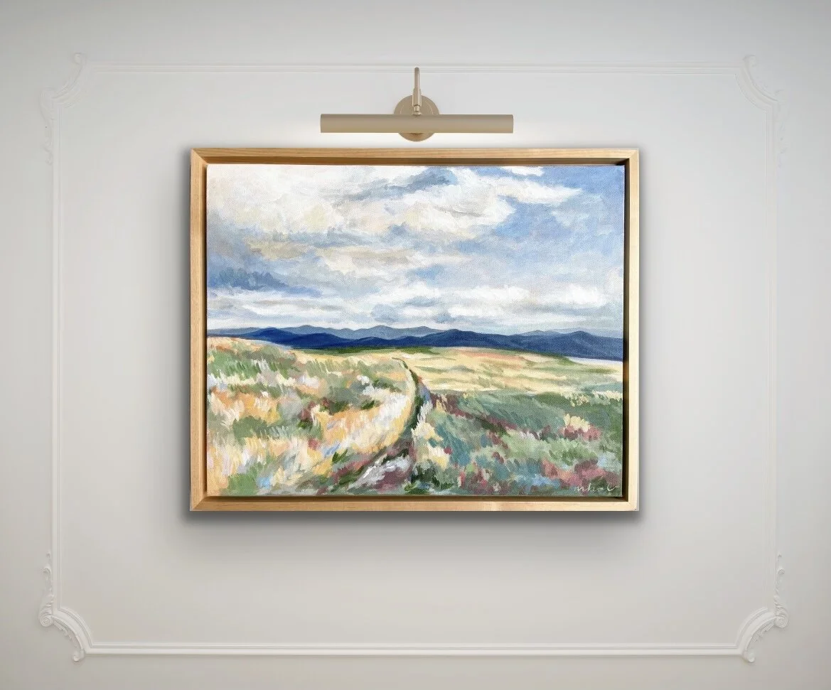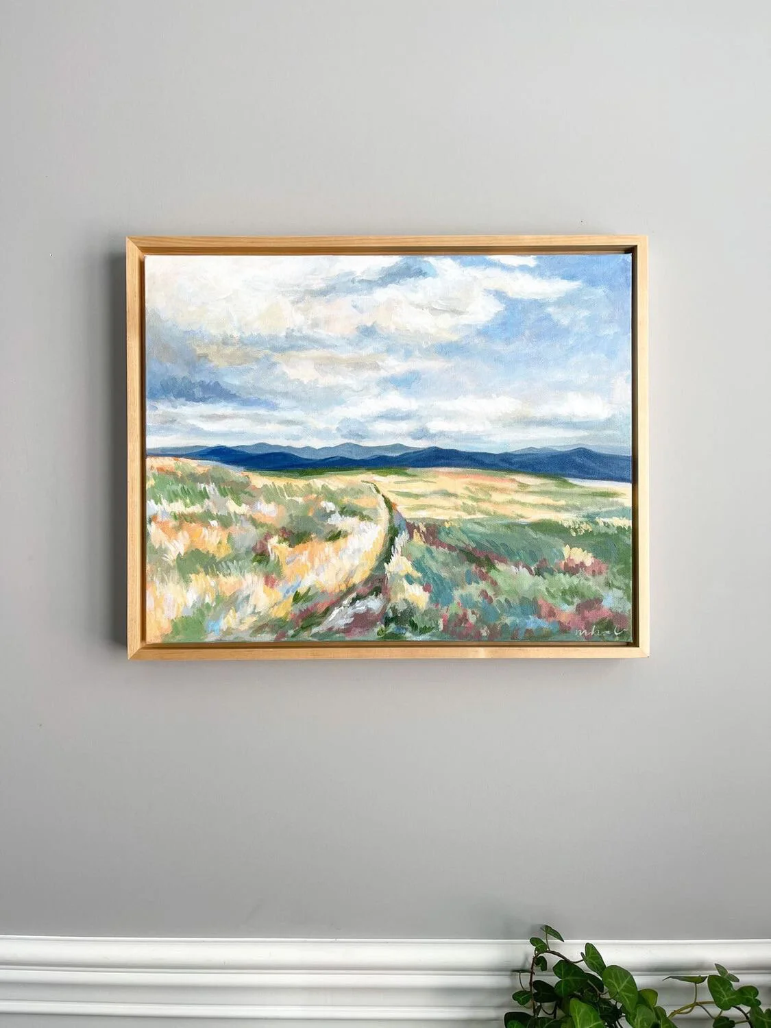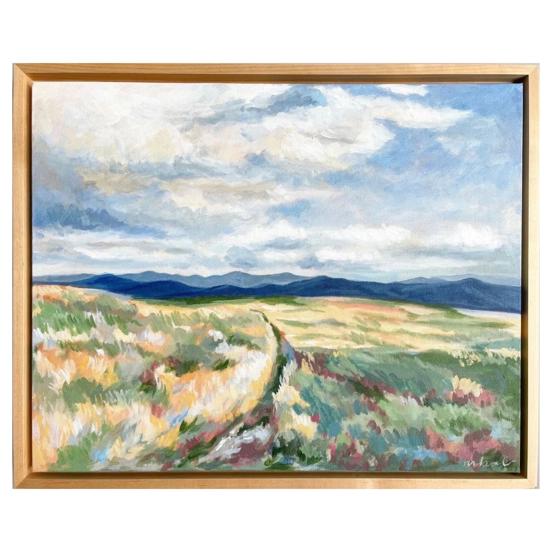 Acrylic on Canvas, Varnished, and Framed in a Maple Floating Frame
