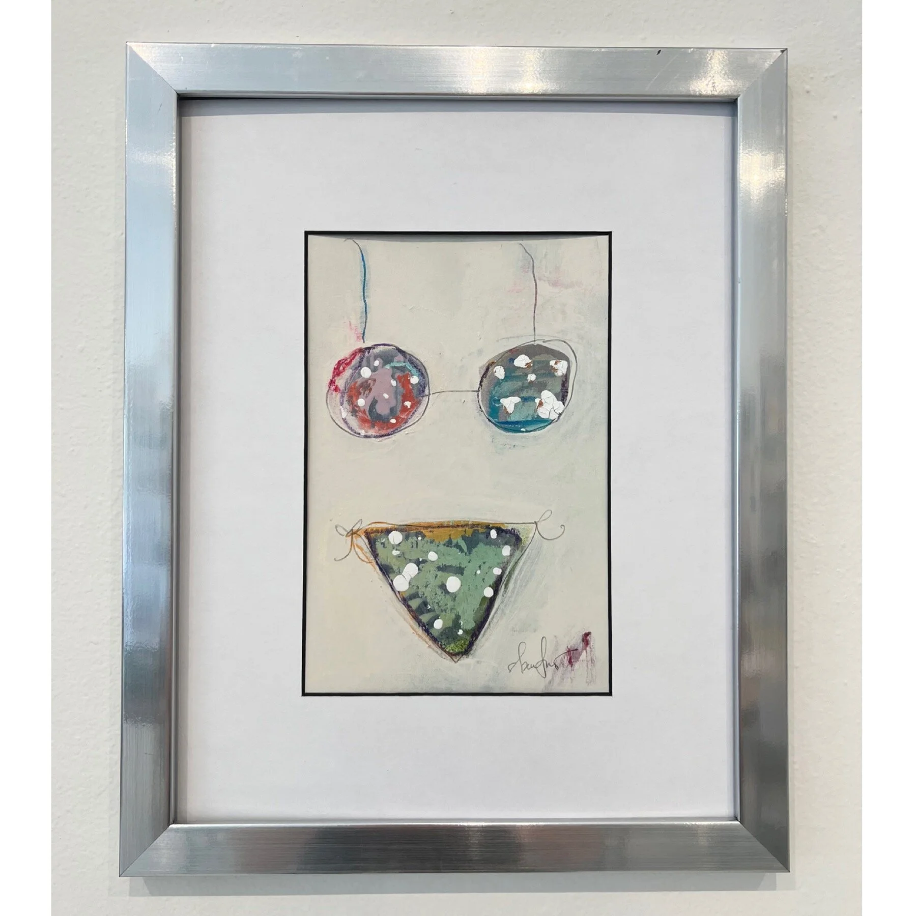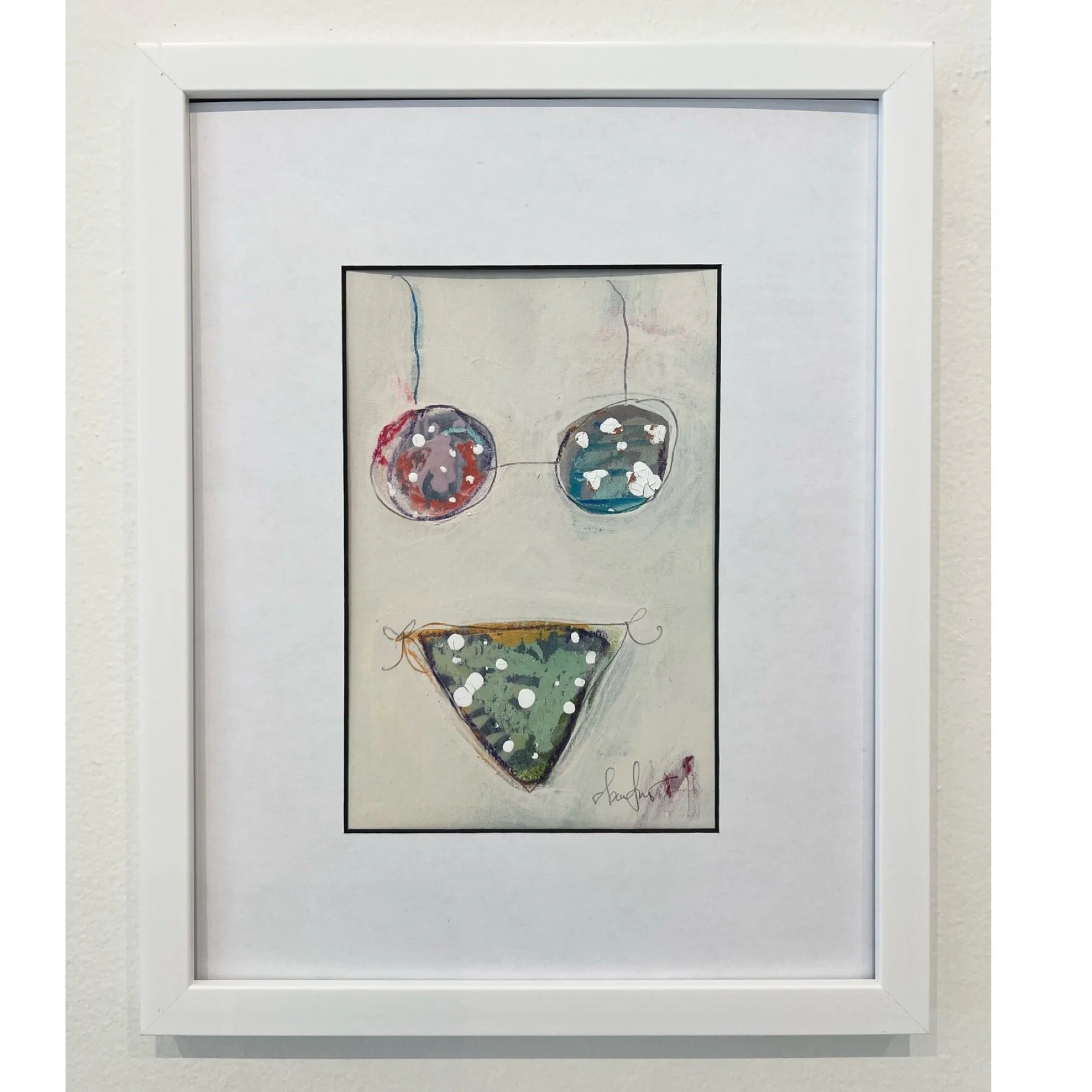 Mixed media on Heavyweight Paper Board in a White Mat with Black Trim Interior.