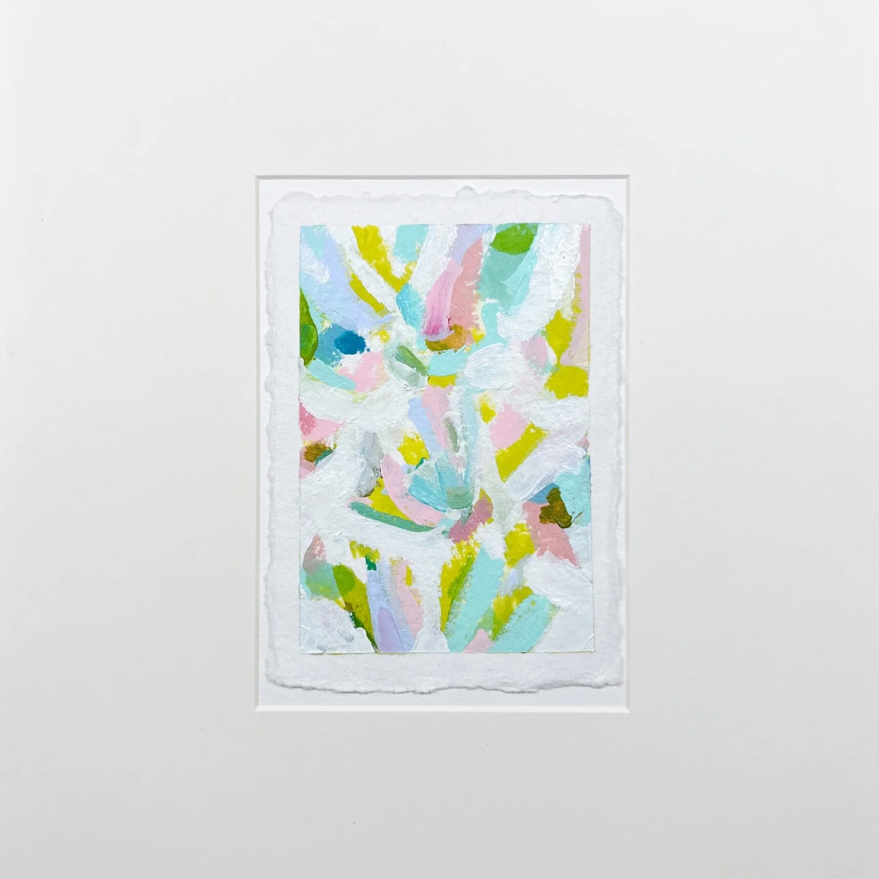 Gouache with Charvin Acrylics on Handmade Deckled Paper in a Brushed Gold Frame with Removable Easel Back/Hooks Attached for Option to Hang. Sour Cream Matte.