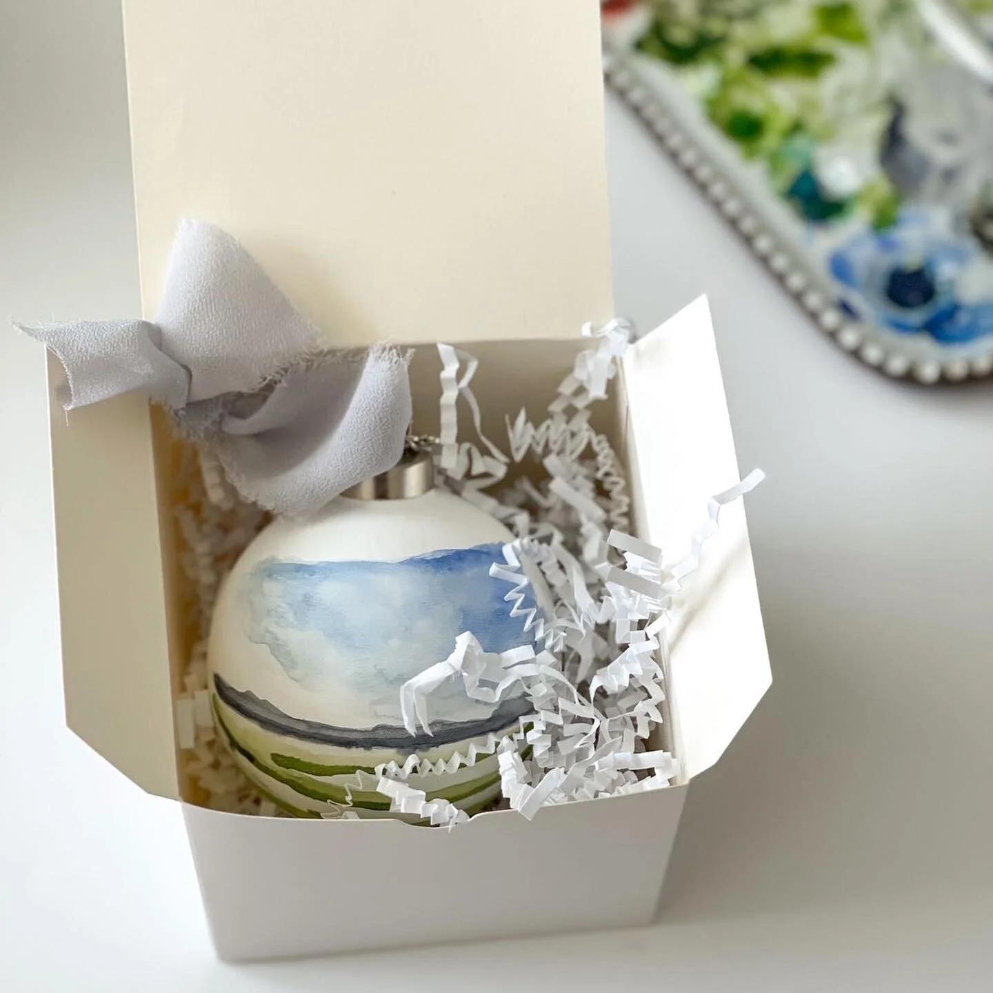 Approximately 3 Inches in Diameter, Hand Painted on Both Sides, 2022 Charm Attached, Arrives in a Gift Box.