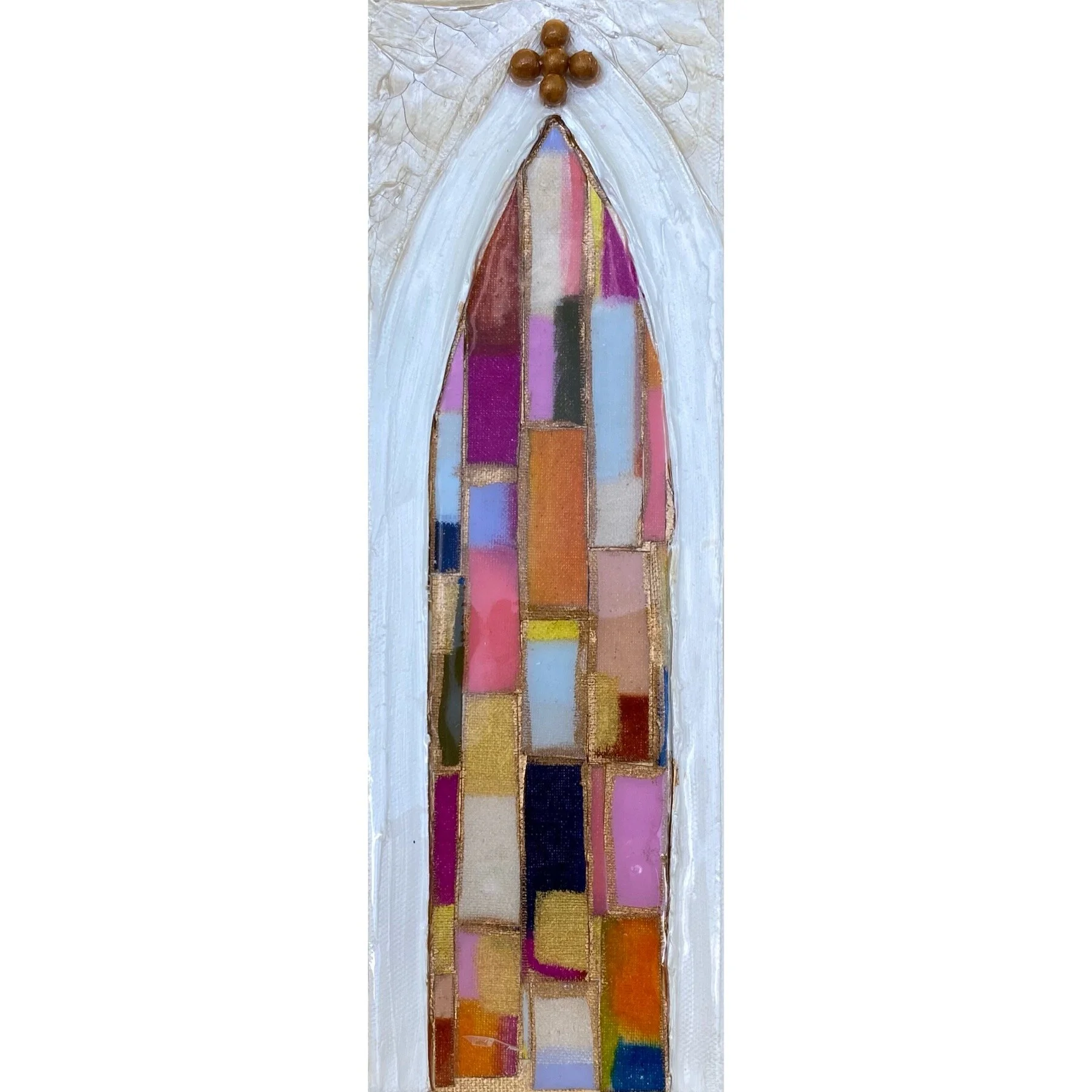 Hand Painted Collage with Hand Dyed Papers mixed with Papers Imported from Israel and Italy on Canvas. A Heavy Coat of Resin Seals It.