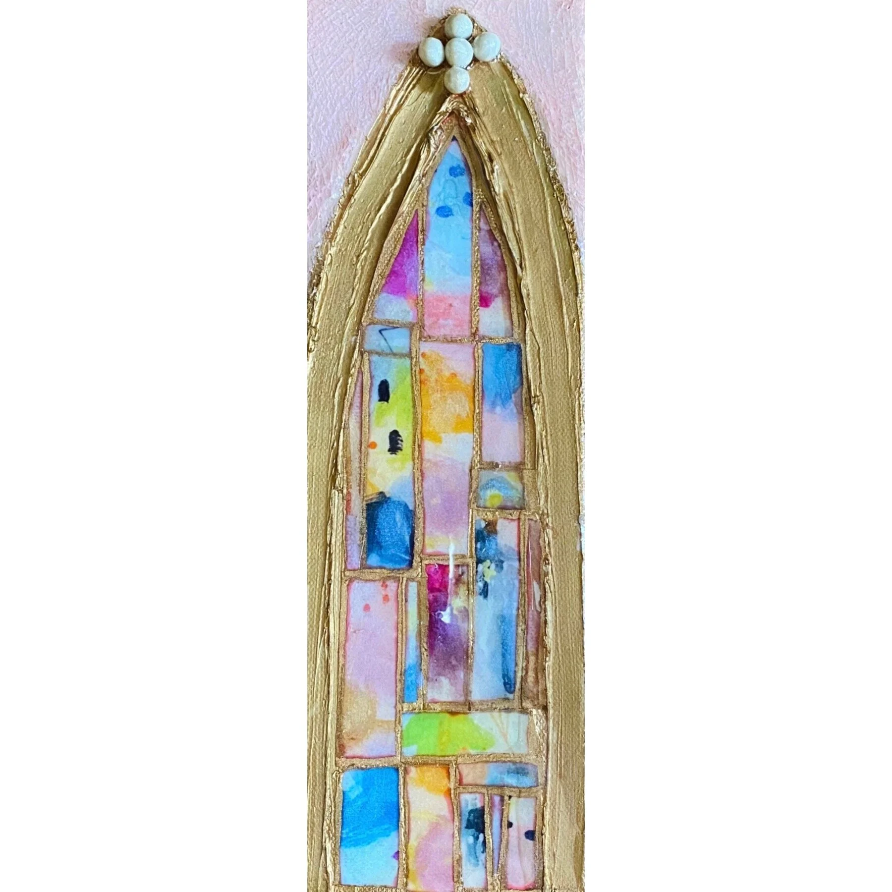 Hand Painted Collage with Hand Dyed Papers mixed with Papers Imported from Israel and Italy on Canvas. A Heavy Coat of Resin Seals It.