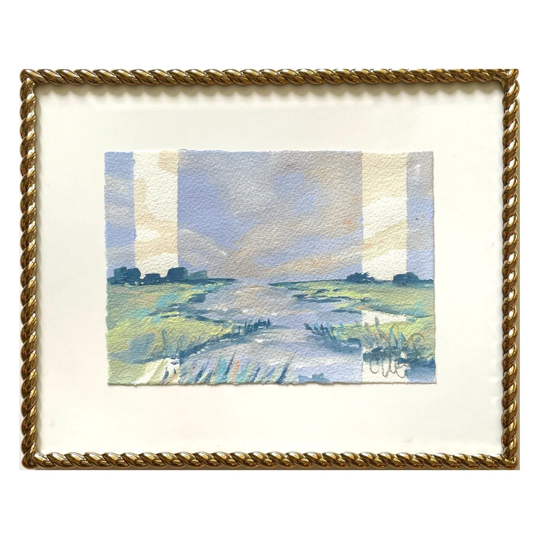 Acrylic on Paper, Framed in a Gold Frame with Glass Front.