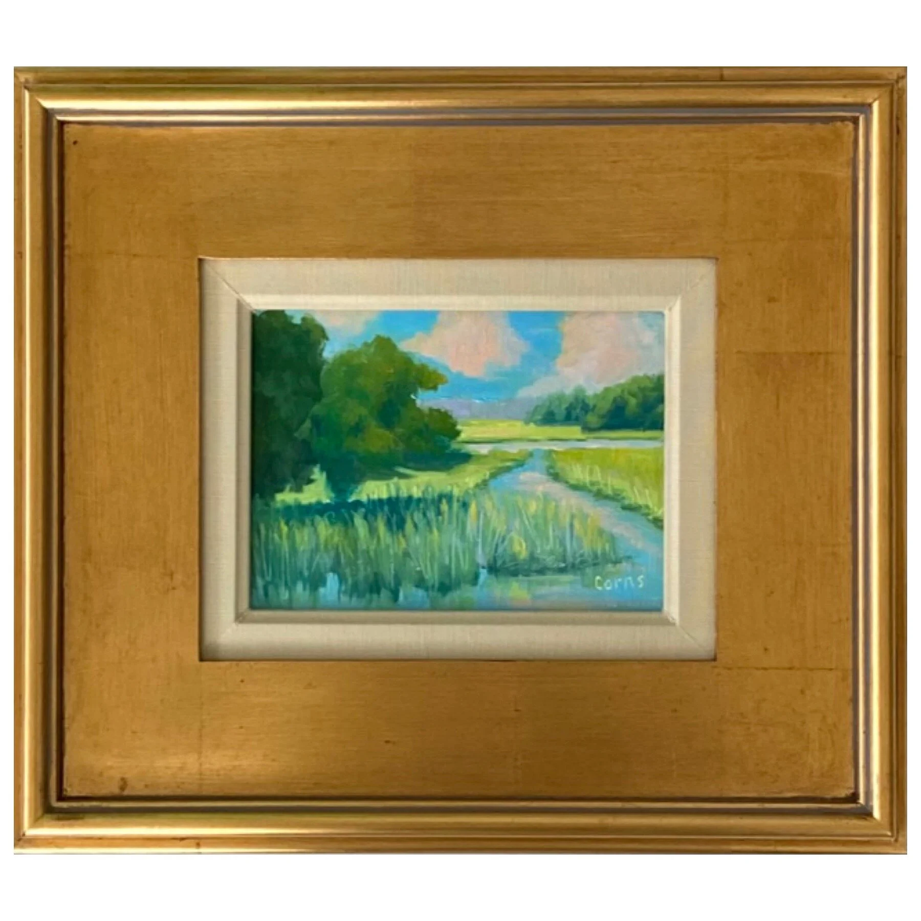 Oil on Panel in a Gold Leaf Frame with Linen Insert